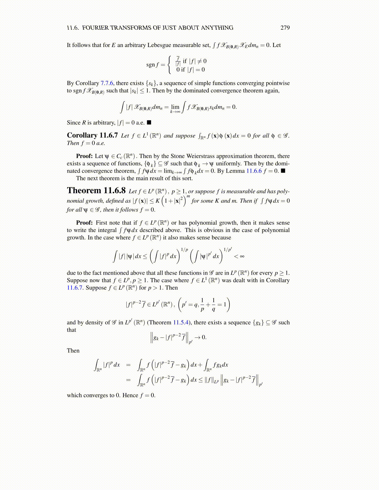 Corollary 11.6.7 Let f ∈ L1 (Rn) and suppose∫Rn f (x)φ (x)dx = 0 for all φ ∈ G .