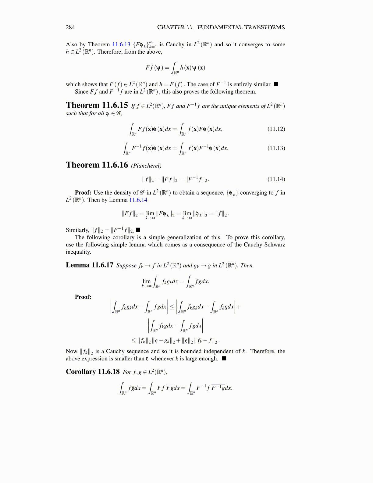 Proof: Use the density of G in L2 (Rn) to obtain a sequence, {φ k} converging to f inL2 (Rn). Then by Lemma 11.6.14