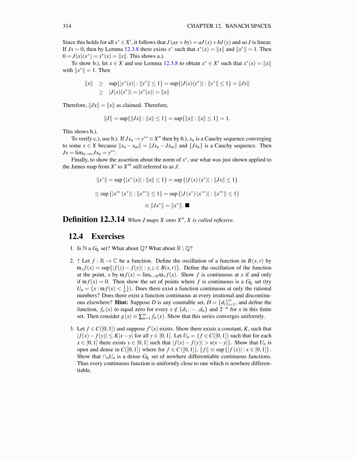 Since this holds for all x∗ ∈ X ′, it follows that J (ax+by) = aJ (x)+bJ (y) and so J is linear.If Jx = 0, then by Lemma 12.3.8 there exists x∗ such that x∗(x) = ∥x∥ and ∥x∗∥= 1. Then0 = J(x)(x∗) = x∗(x) = ∥x∥. This shows a.).