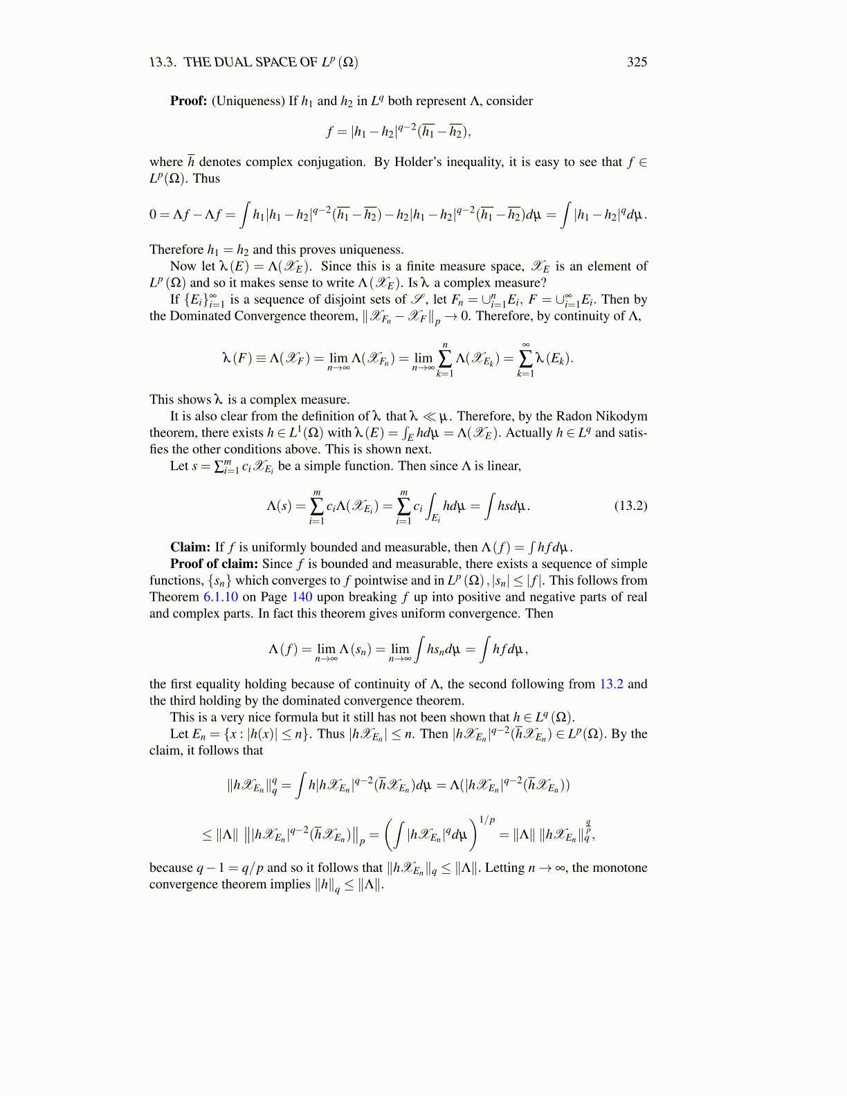 13.3. THE DUAL SPACE OF Lp (Ω) 325