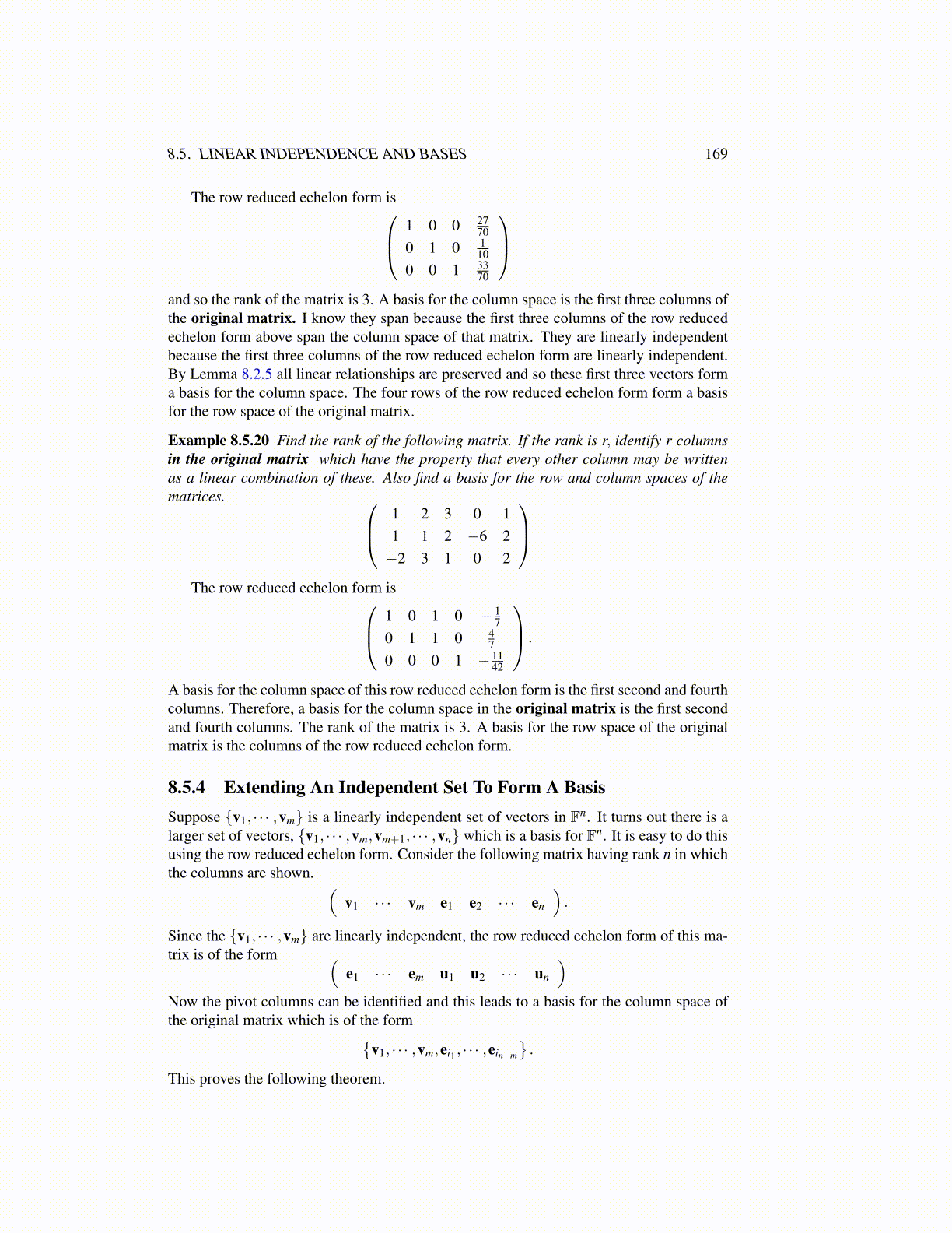 8.5. LINEAR INDEPENDENCE AND BASES 169