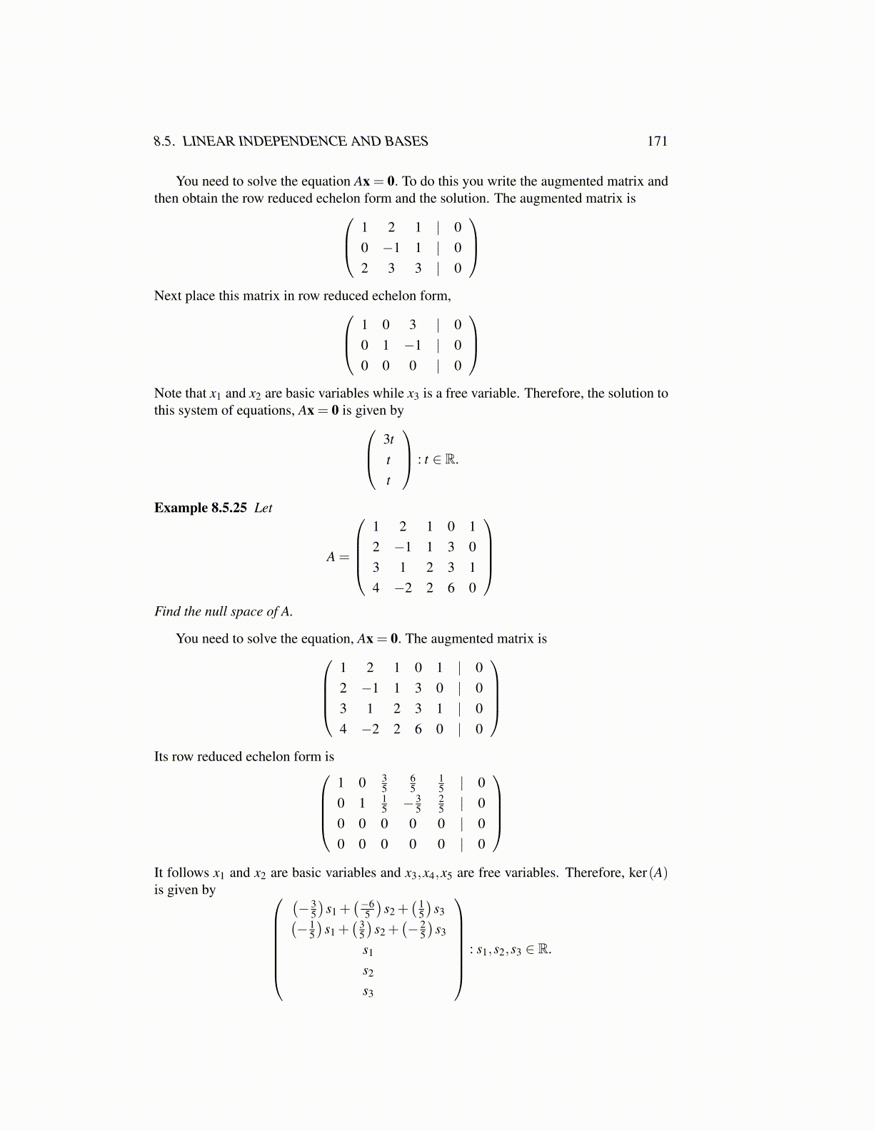 8.5. LINEAR INDEPENDENCE AND BASES 171