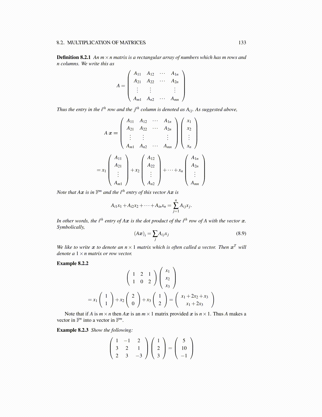 8.2. MULTIPLICATION OF MATRICES 133