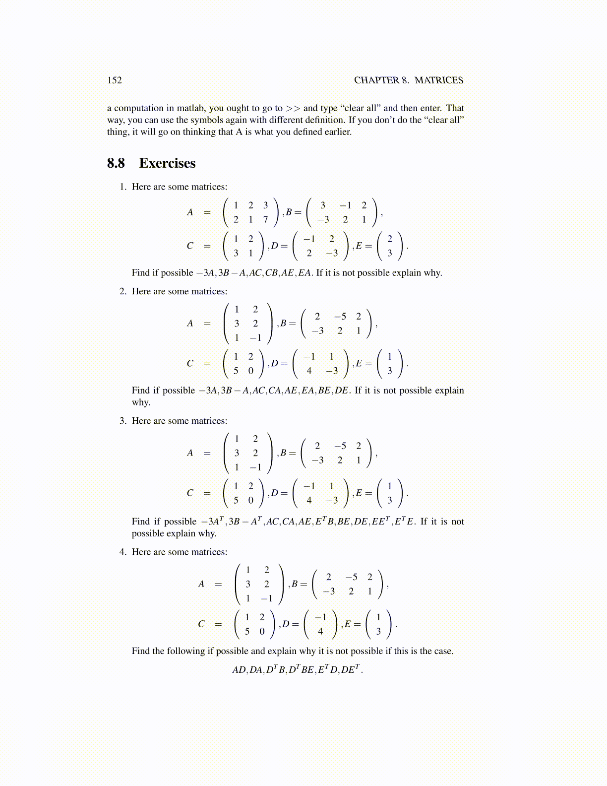 Find if possible −3A,3B−A,AC,CA,AE,EA,BE,DE. If it is not possible explainwhy.
