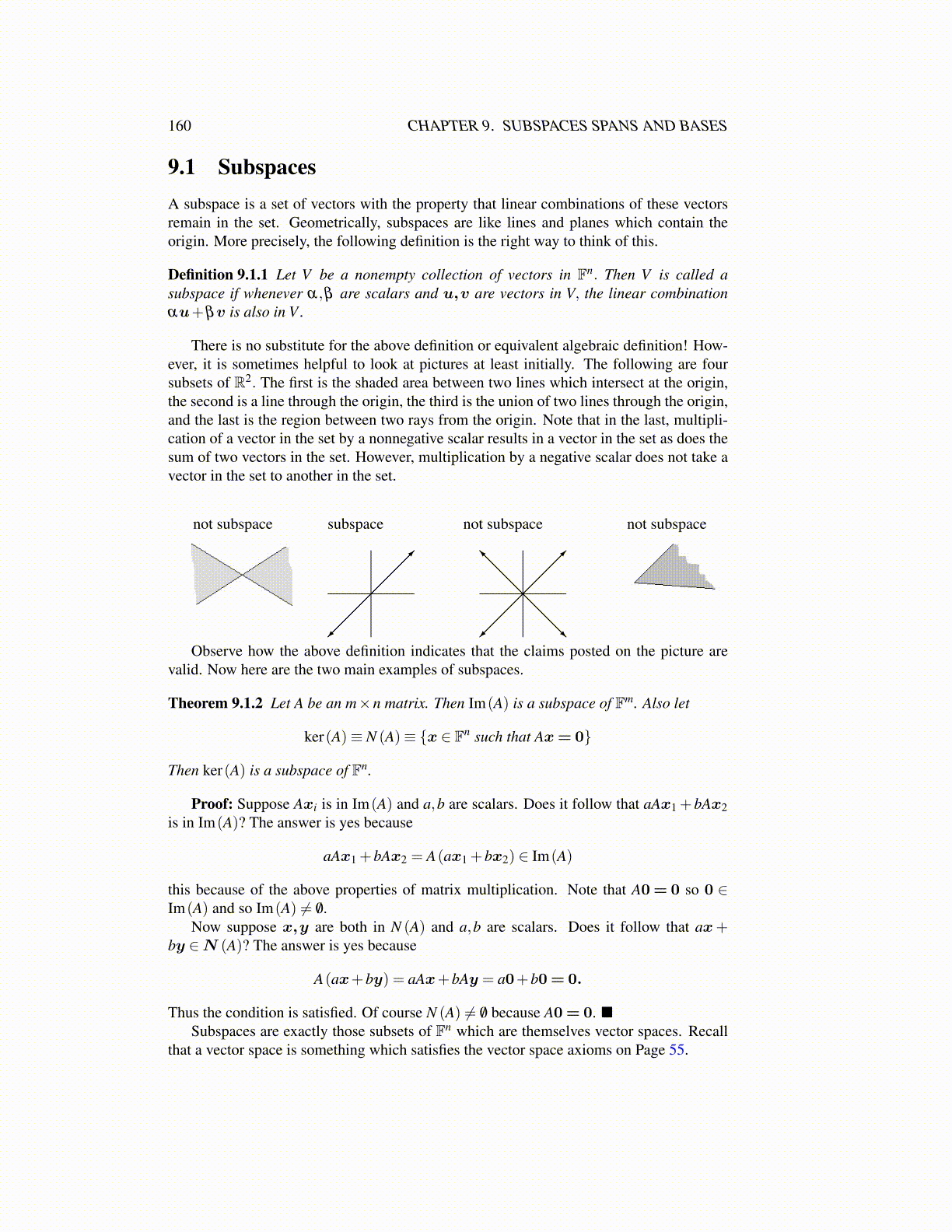 Thus the condition is satisfied. Of course N (A) ̸= /0 because A0 = 0. ■Subspaces are exactly those subsets of Fn which are themselves vector spaces. Recall
