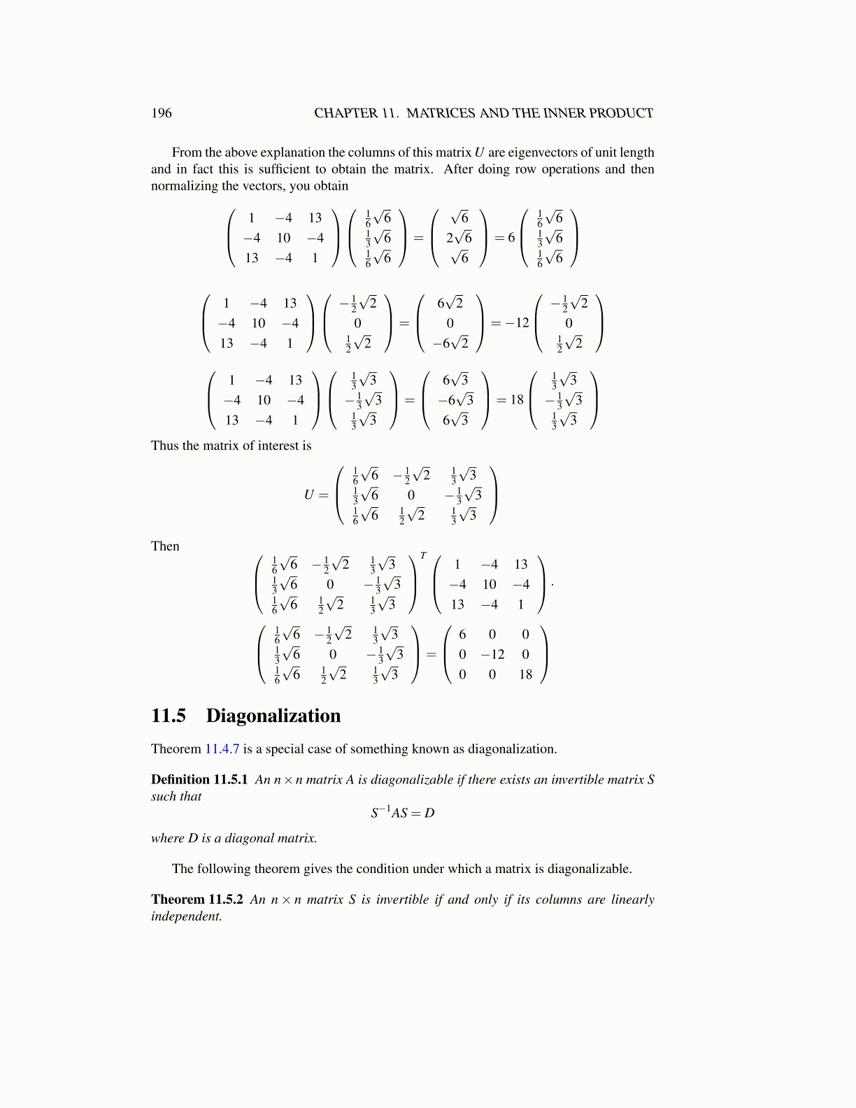 196 CHAPTER 11. MATRICES AND THE INNER PRODUCT