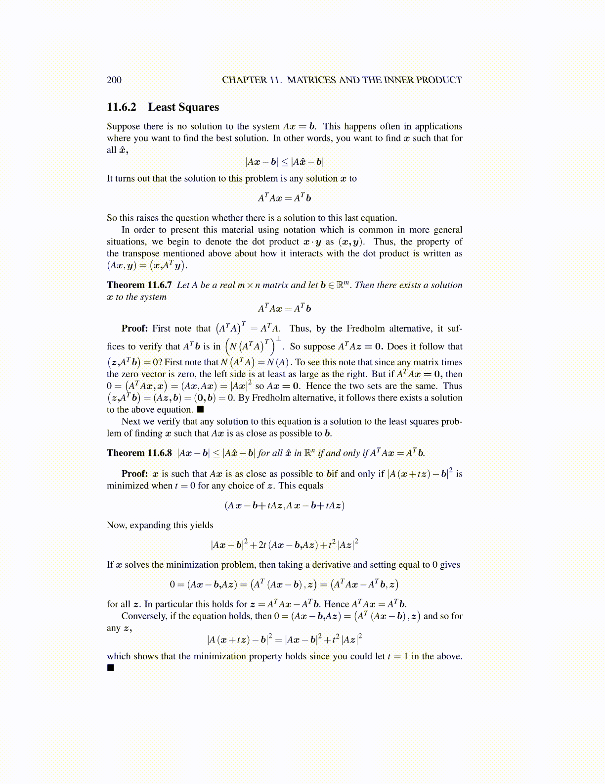 Theorem 11.6.8 |Ax−b| ≤ |Ax̂−b| for all x̂ in Rn if and only if AT Ax= ATb.