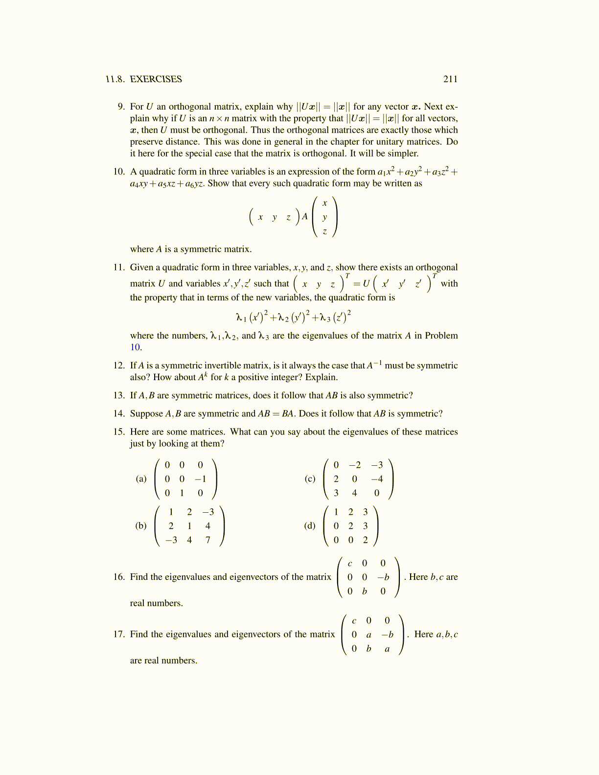 11. Given a quadratic form in three variables, x,y, and z, show there exists an orthogonal