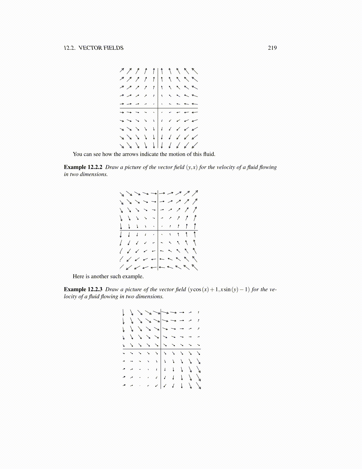 Example 12.2.3 Draw a picture of the vector field (ycos(x)+1,xsin(y)−1) for the ve-locity of a fluid flowing in two dimensions.