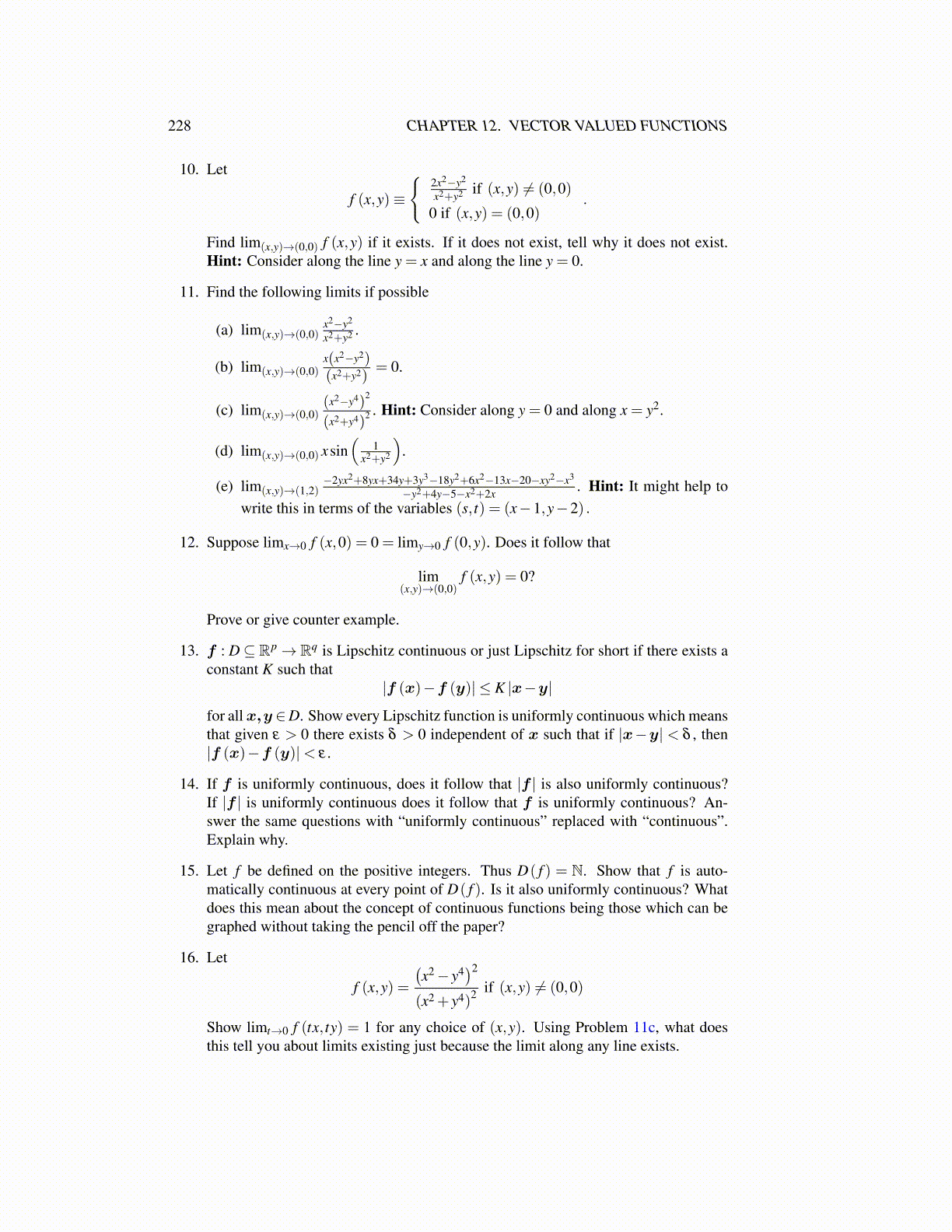 12. Suppose limx→0 f (x,0) = 0 = limy→0 f (0,y). Does it follow that