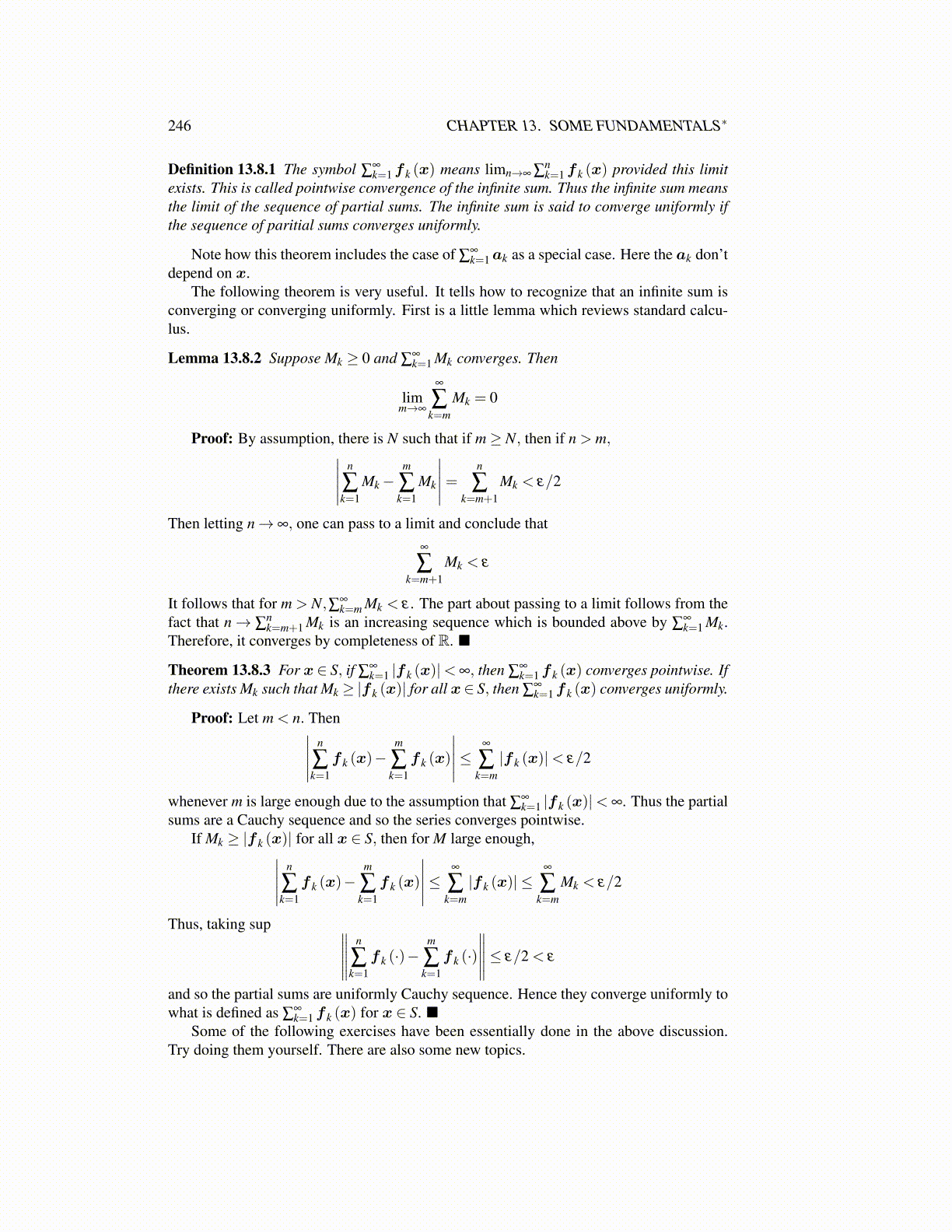 Theorem 13.8.3 For x ∈ S, if ∑∞k=1 |f k (x)|< ∞, then ∑