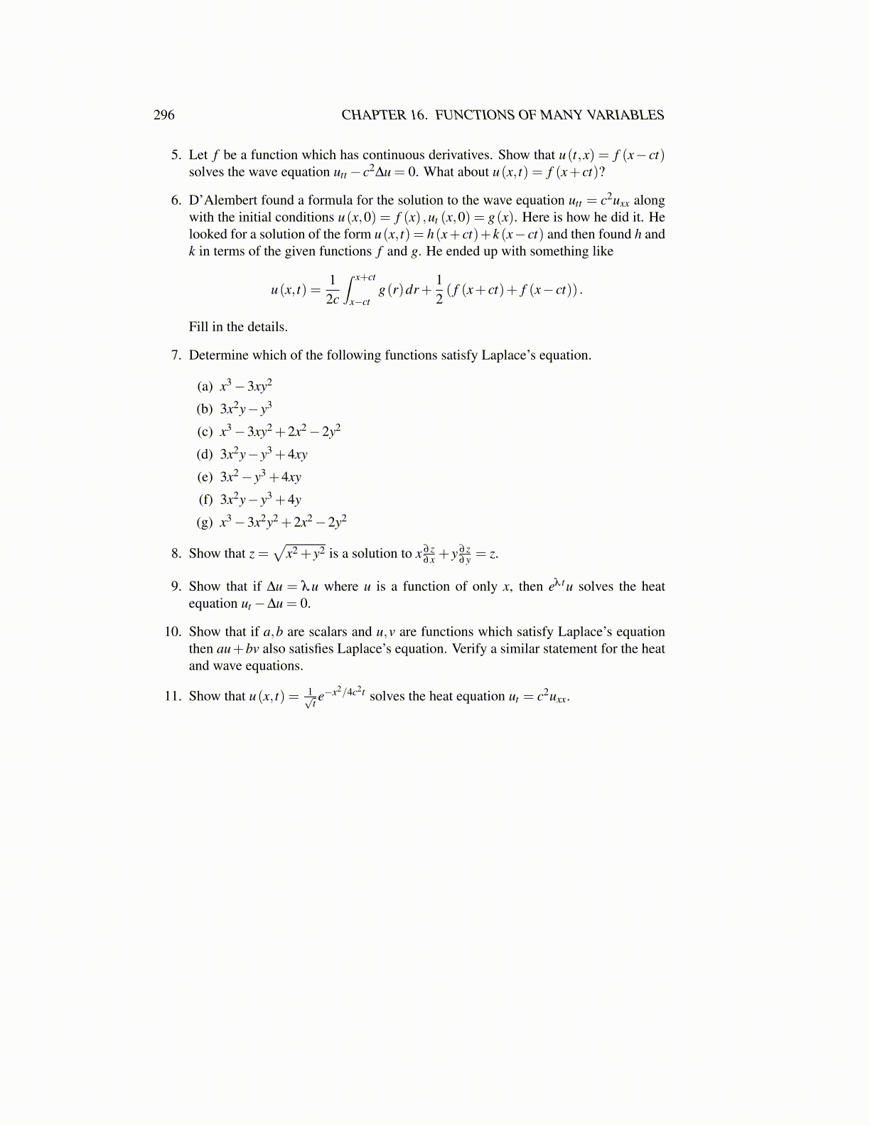 7. Determine which of the following functions satisfy Laplace’s equation.