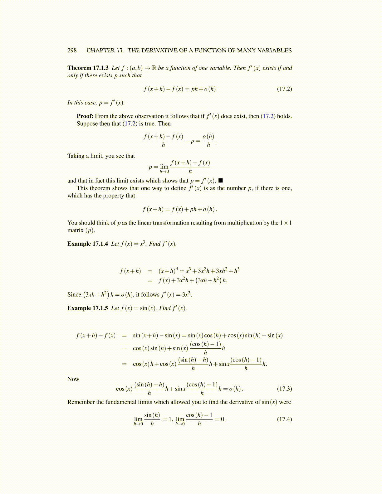Theorem 17.1.3 Let f : (a,b)→ R be a function of one variable. Then f ′ (x) exists if andonly if there exists p such that