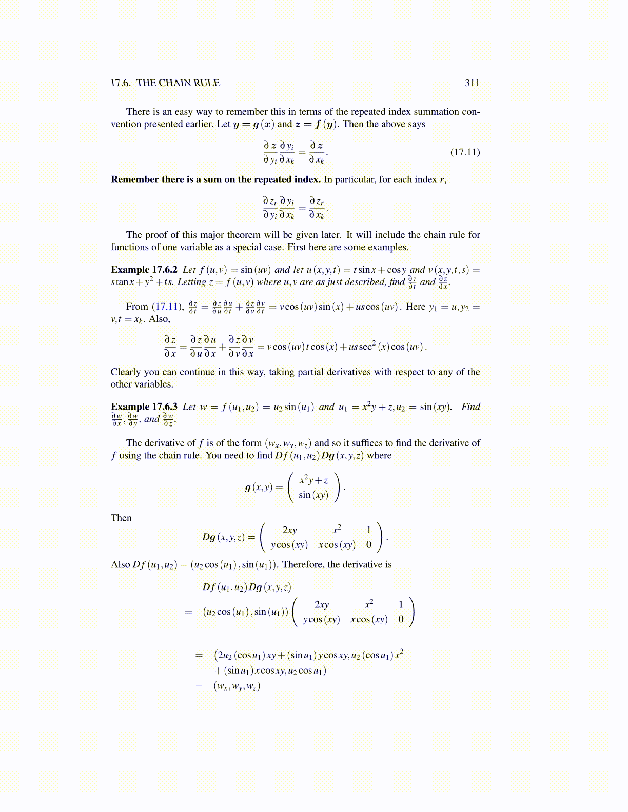 The proof of this major theorem will be given later. It will include the chain rule forfunctions of one variable as a special case. First here are some examples.