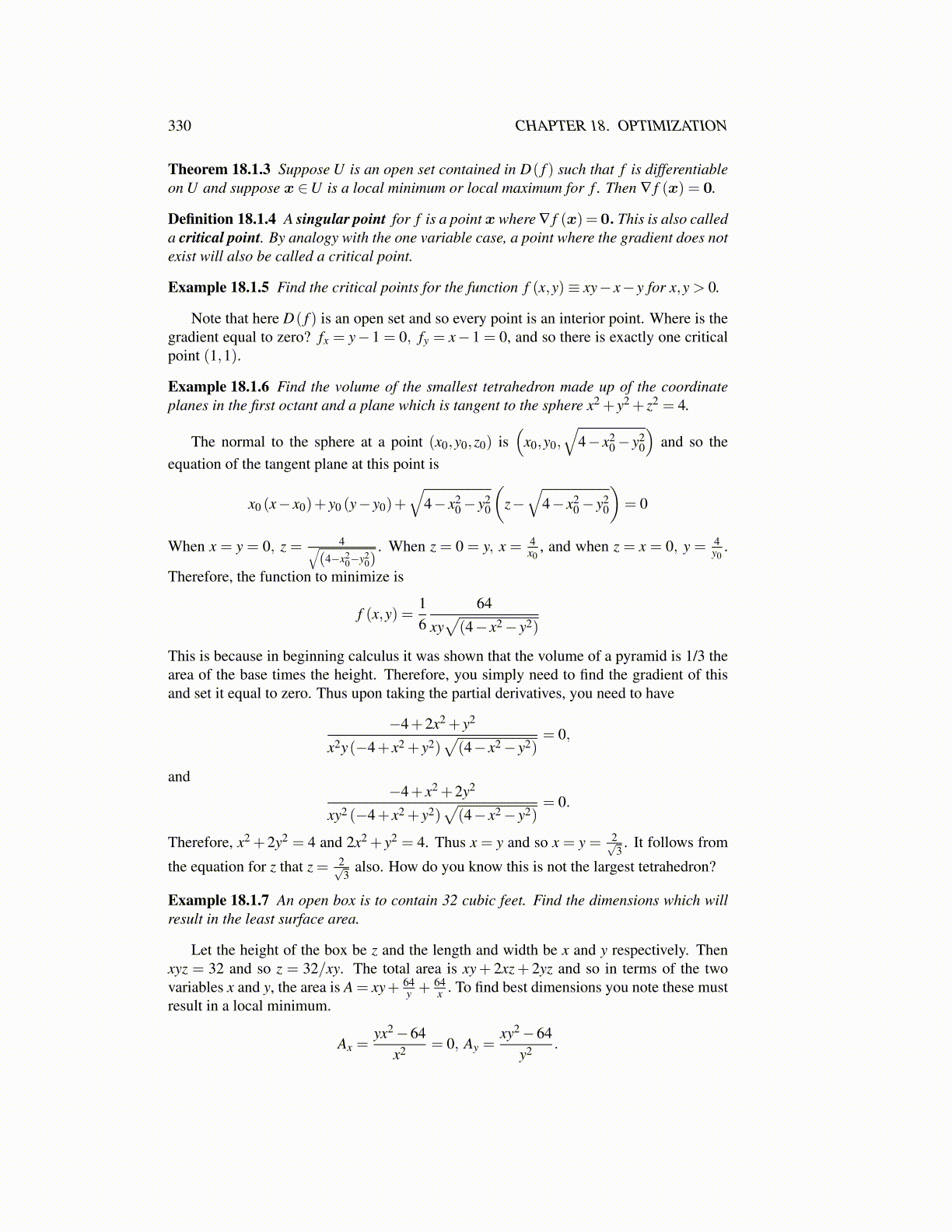 330 CHAPTER 18. OPTIMIZATION