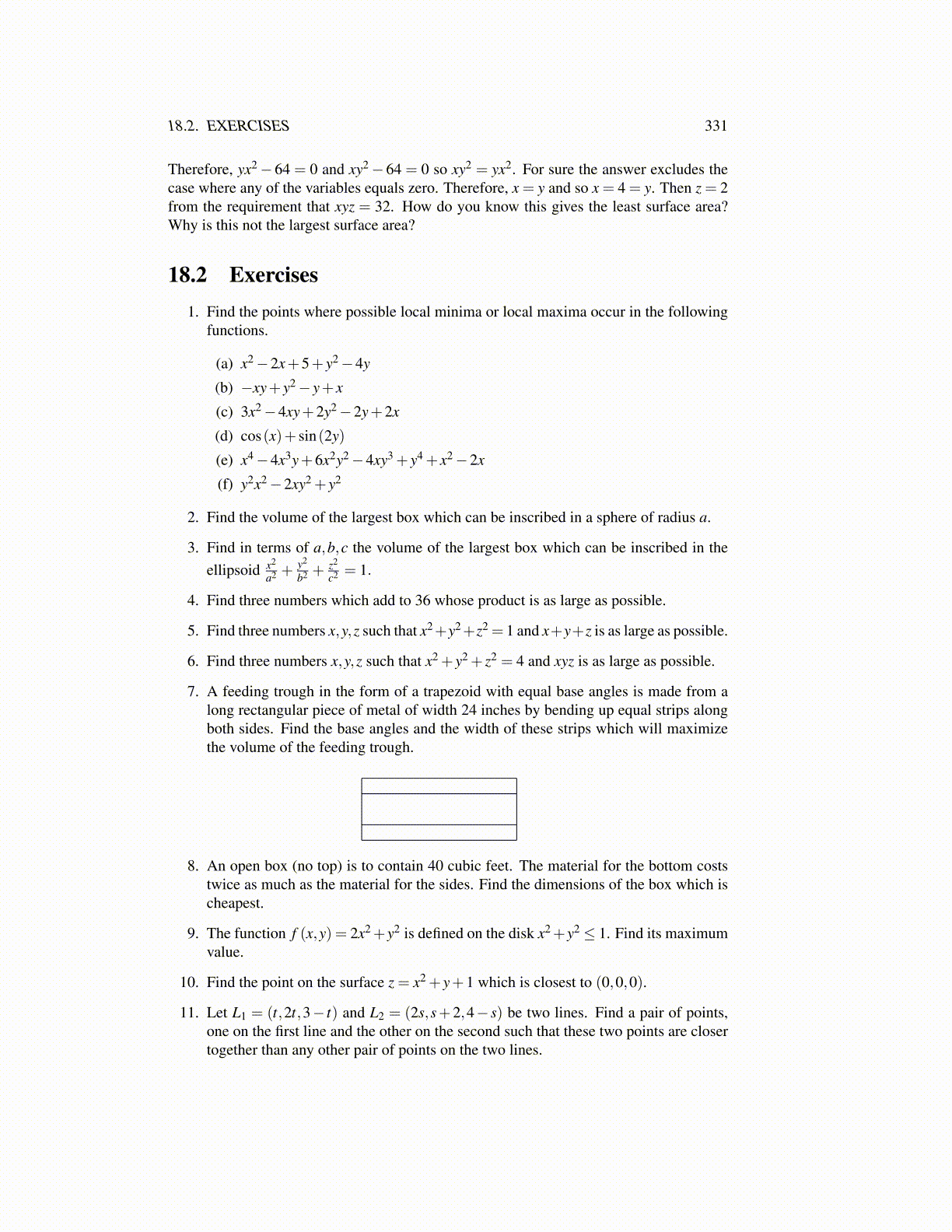 18.2 Exercises1. Find the points where possible local minima or local maxima occur in the following