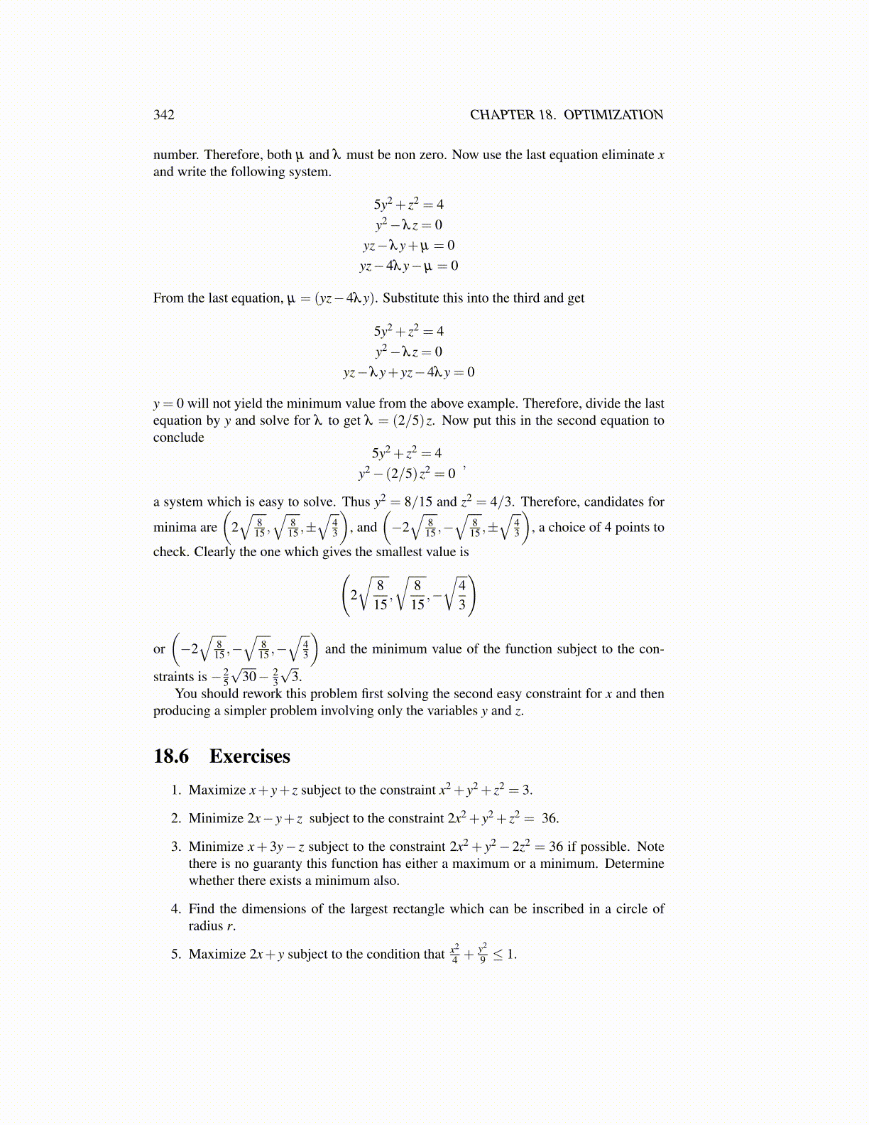 18.6 Exercises1. Maximize x+ y+ z subject to the constraint x2 + y2 + z2 = 3.