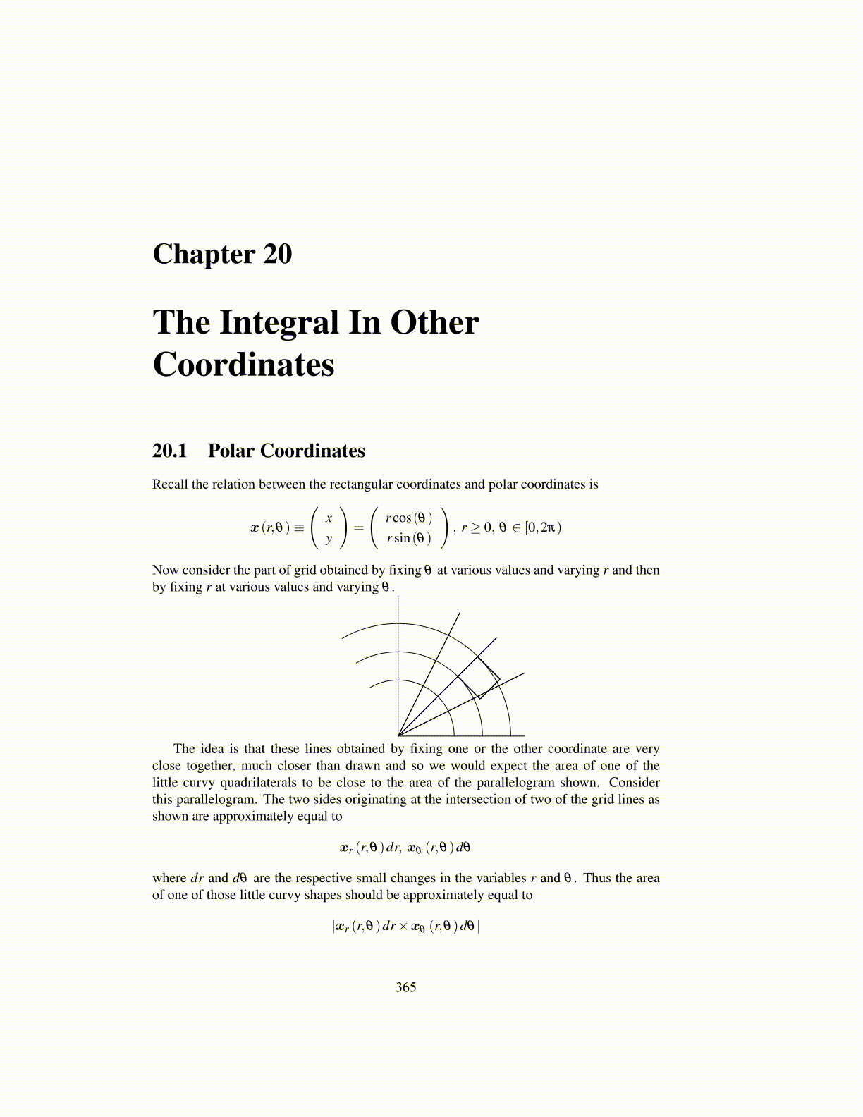 20.1 Polar CoordinatesRecall the relation between the rectangular coordinates and polar coordinates is