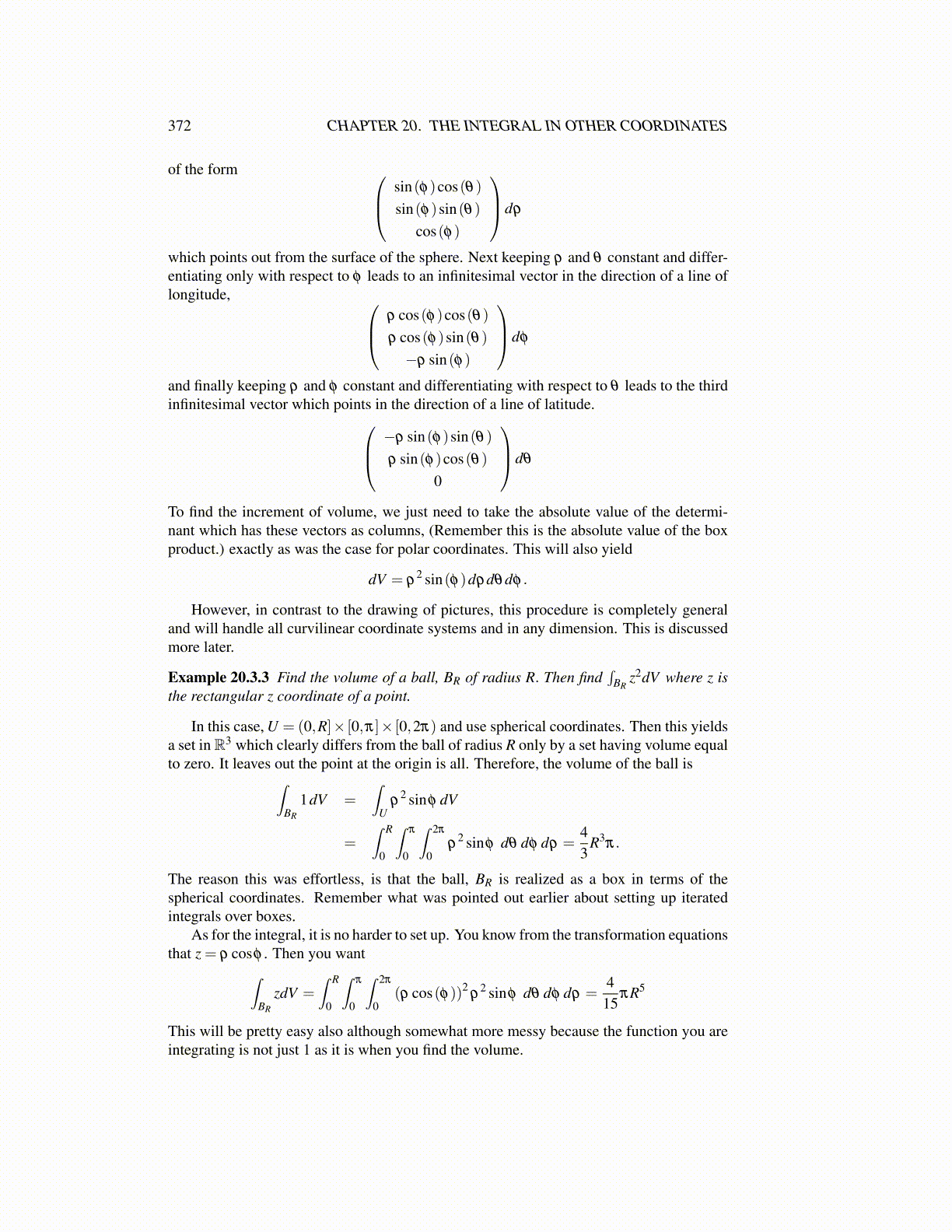 372 CHAPTER 20. THE INTEGRAL IN OTHER COORDINATES