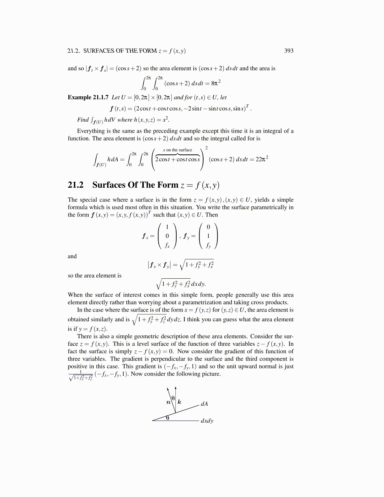 is if y = f (x,z).There is also a simple geometric description of these area elements. Consider the sur-