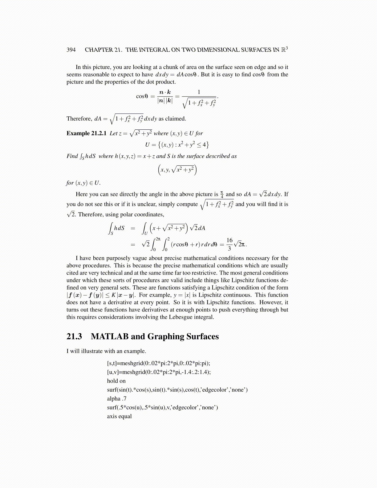 21.3 MATLAB and Graphing SurfacesI will illustrate with an example.