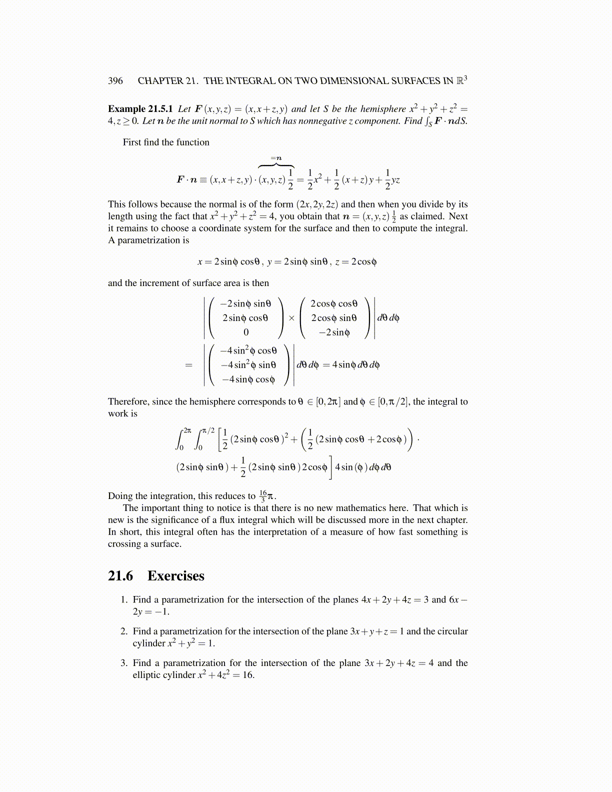 396 CHAPTER 21. THE INTEGRAL ON TWO DIMENSIONAL SURFACES IN R3