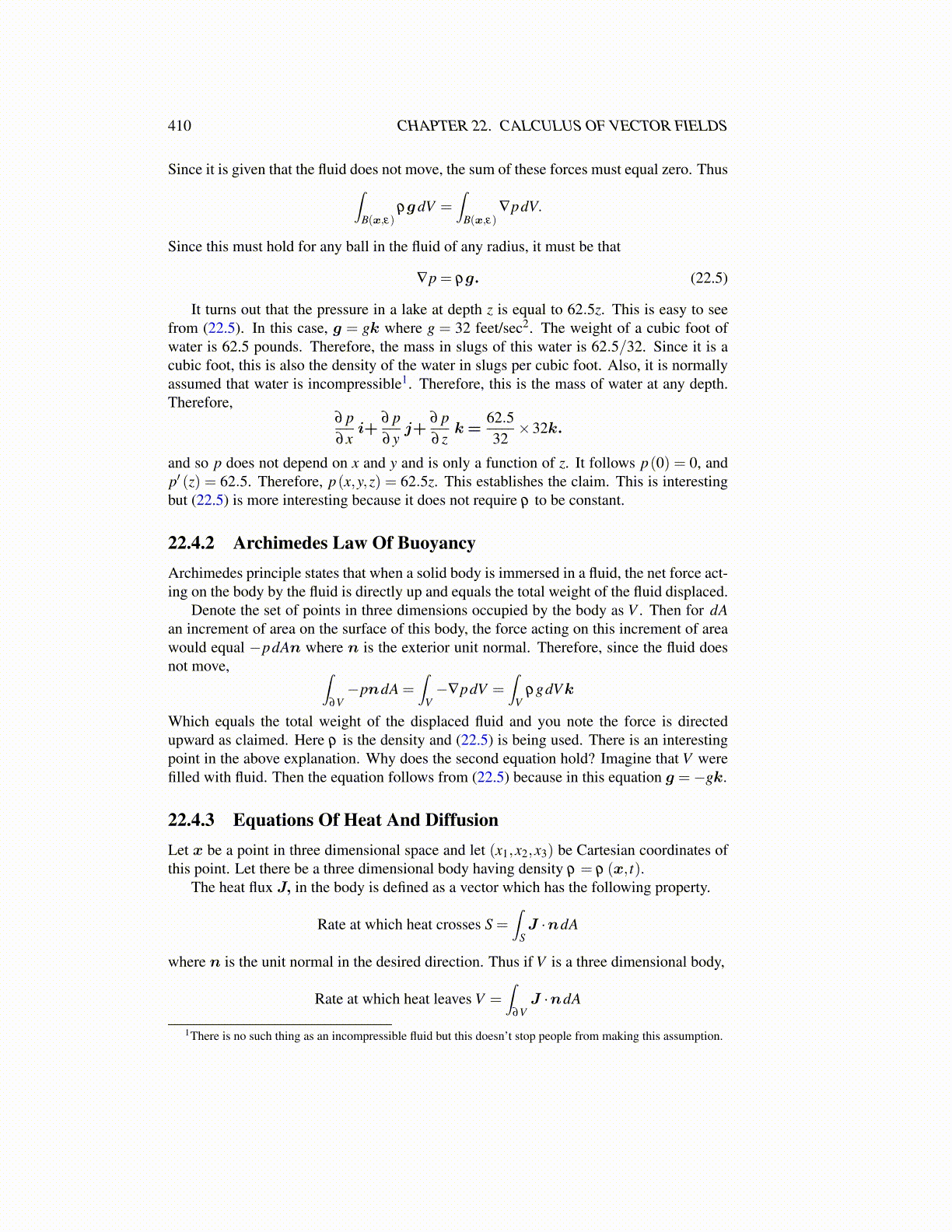 and so p does not depend on x and y and is only a function of z. It follows p(0) = 0, andp′ (z) = 62.5. Therefore, p(x,y,z) = 62.5z. This establishes the claim. This is interestingbut (22.5) is more interesting because it does not require ρ to be constant.
