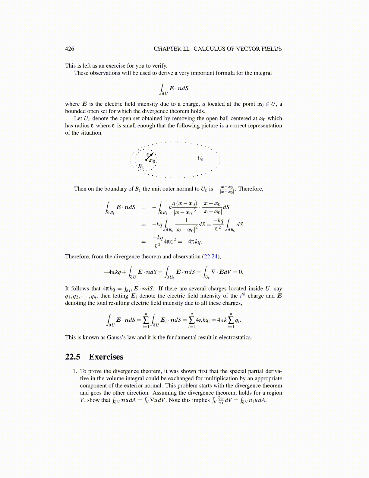 22.5 Exercises1. To prove the divergence theorem, it was shown first that the spacial partial deriva-