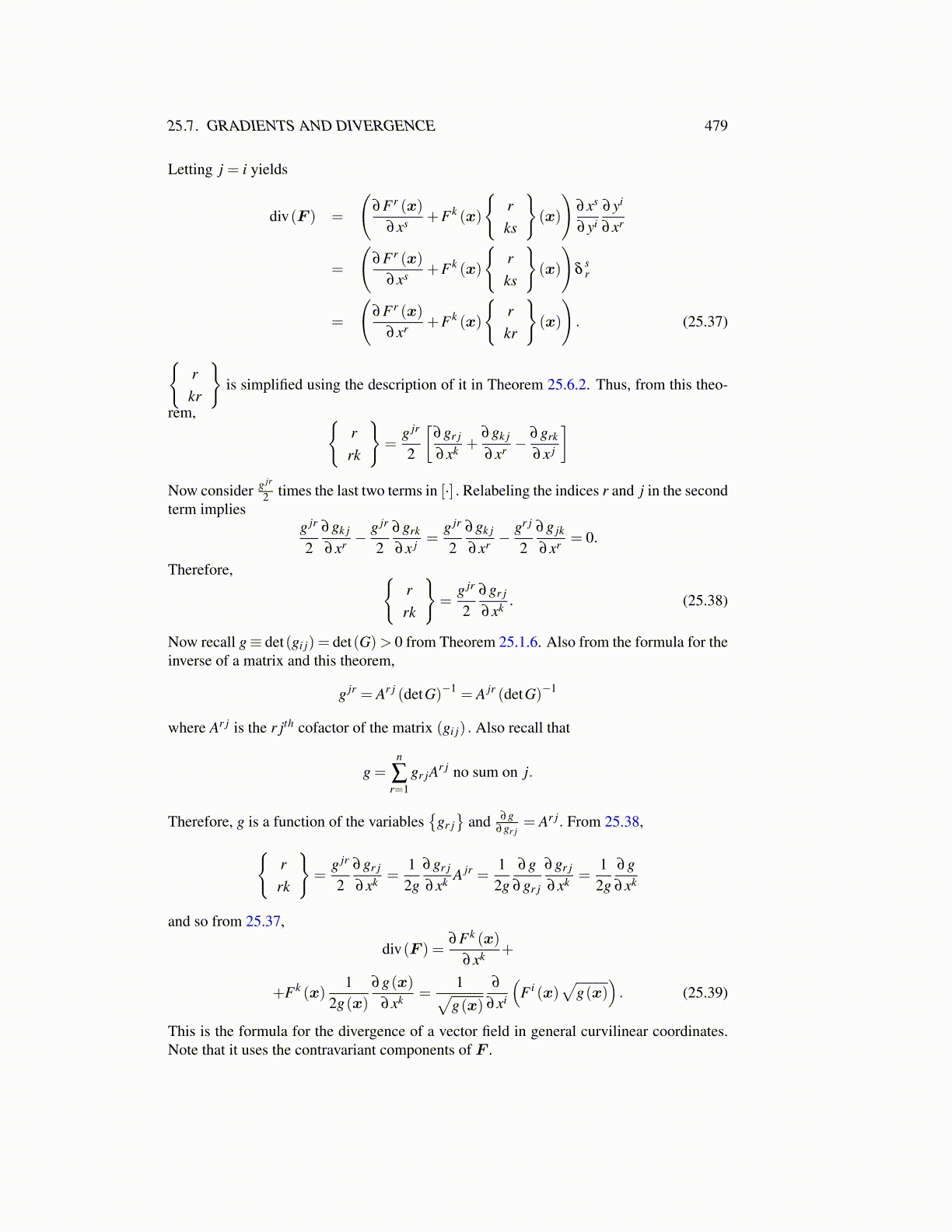 Now recall g≡ det(gi j) = det(G)> 0 from Theorem 25.1.6. Also from the formula for theinverse of a matrix and this theorem,