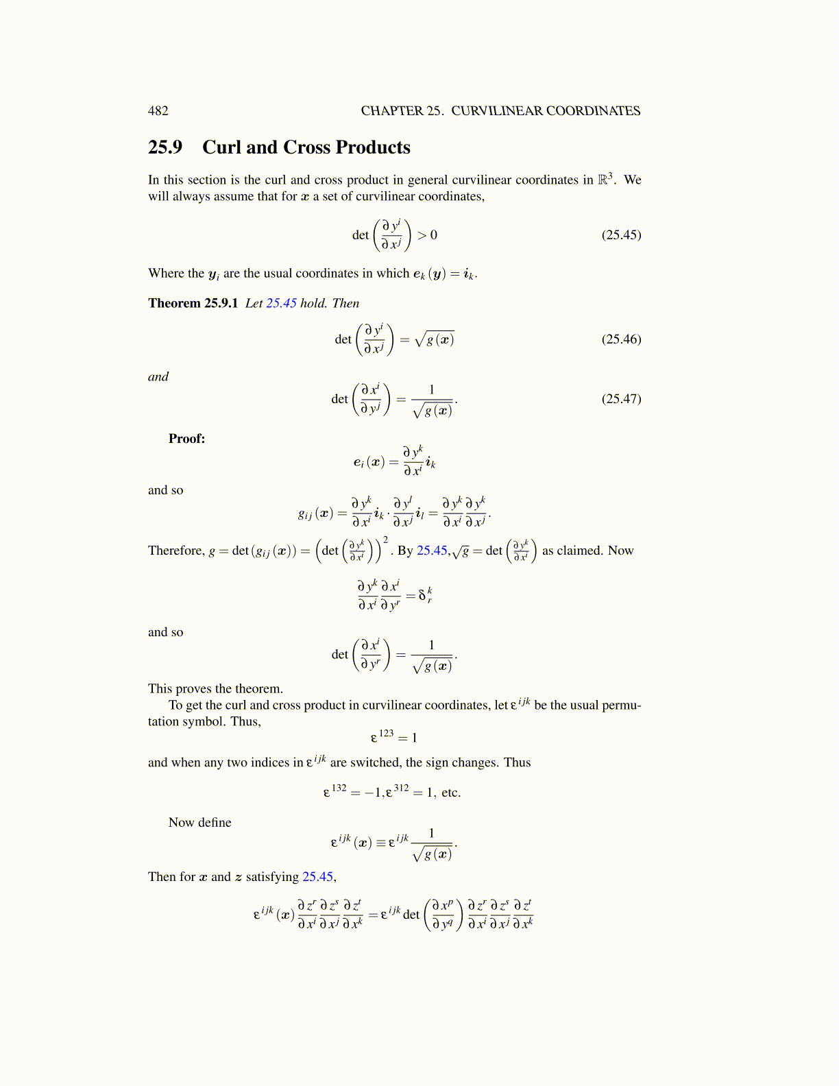 This proves the theorem.To get the curl and cross product in curvilinear coordinates, let ε i jk be the usual permu-