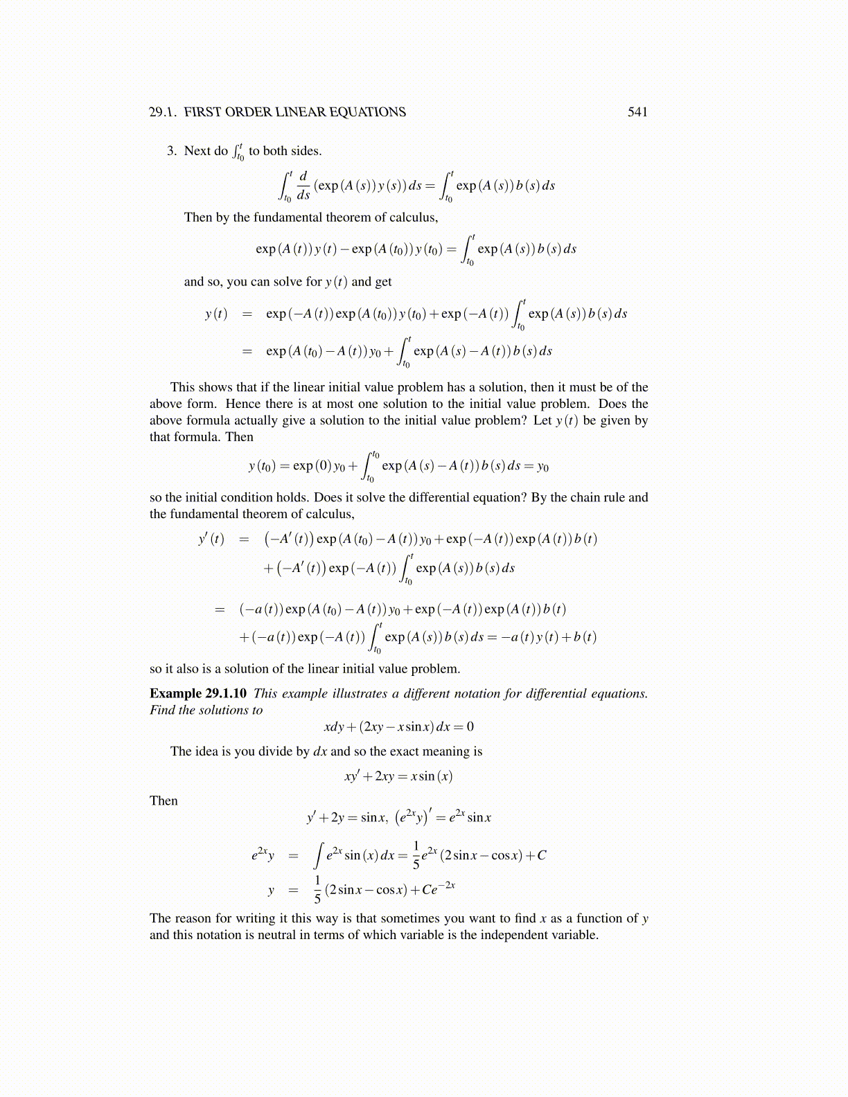 29.1. FIRST ORDER LINEAR EQUATIONS 541