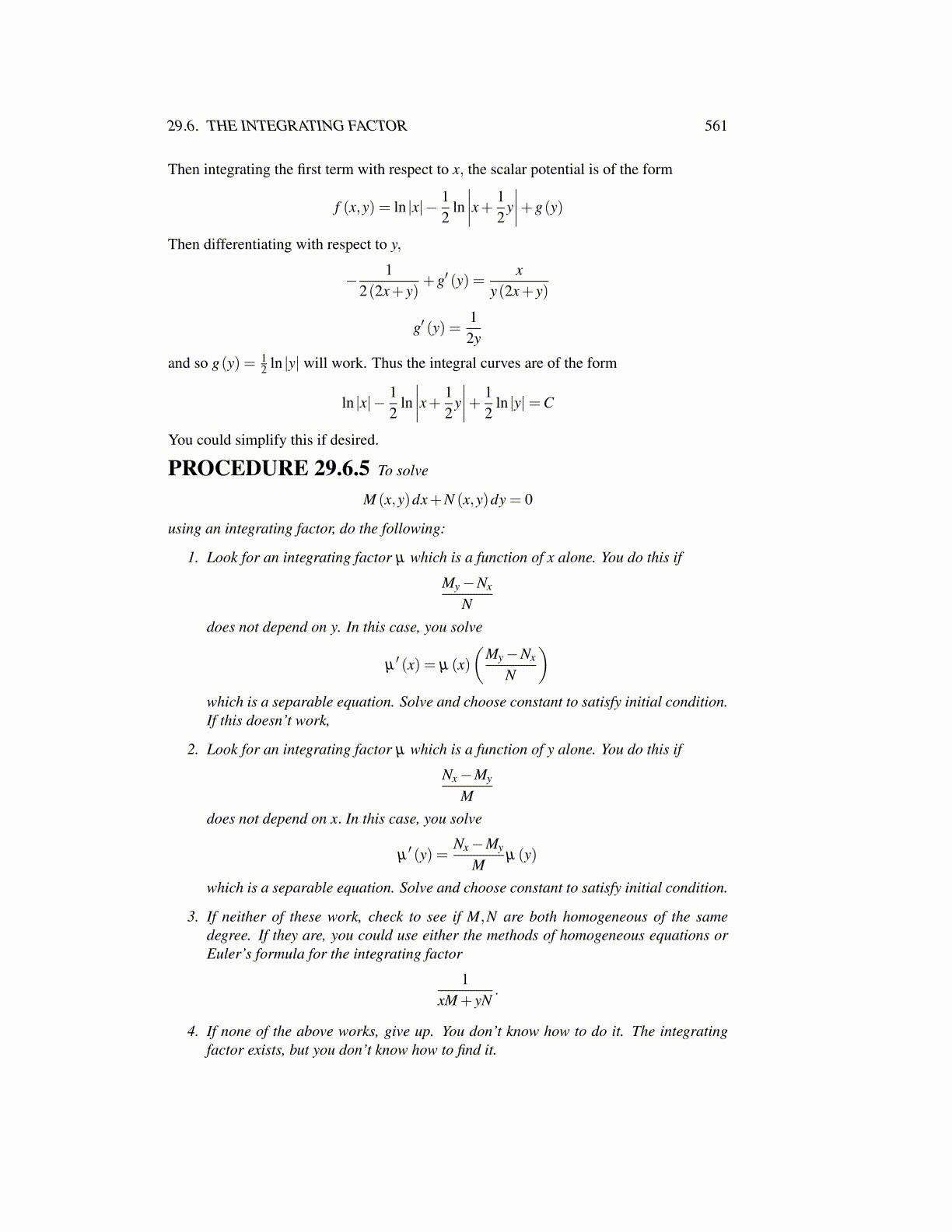 4. If none of the above works, give up. You don’t know how to do it. The integratingfactor exists, but you don’t know how to find it.