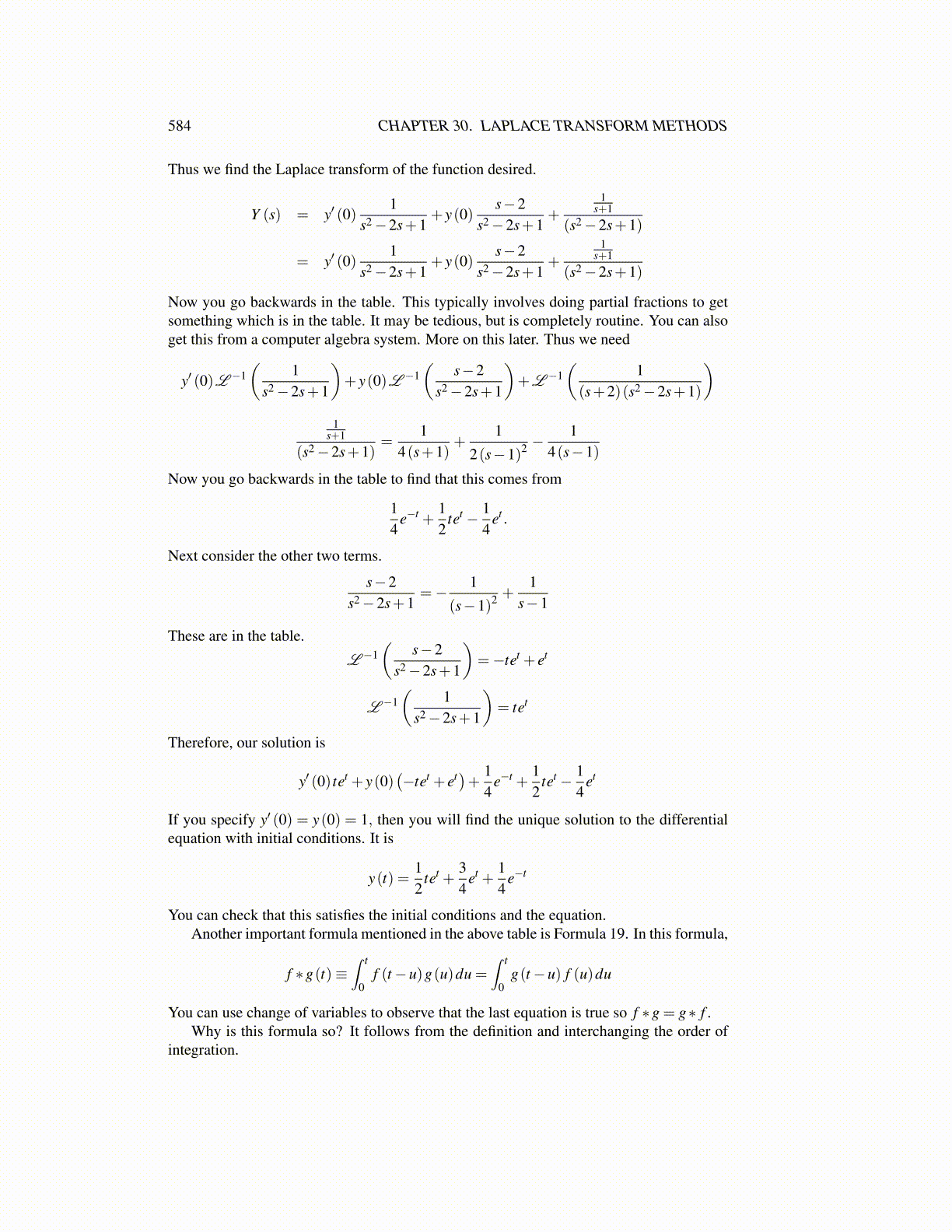 584 CHAPTER 30. LAPLACE TRANSFORM METHODS