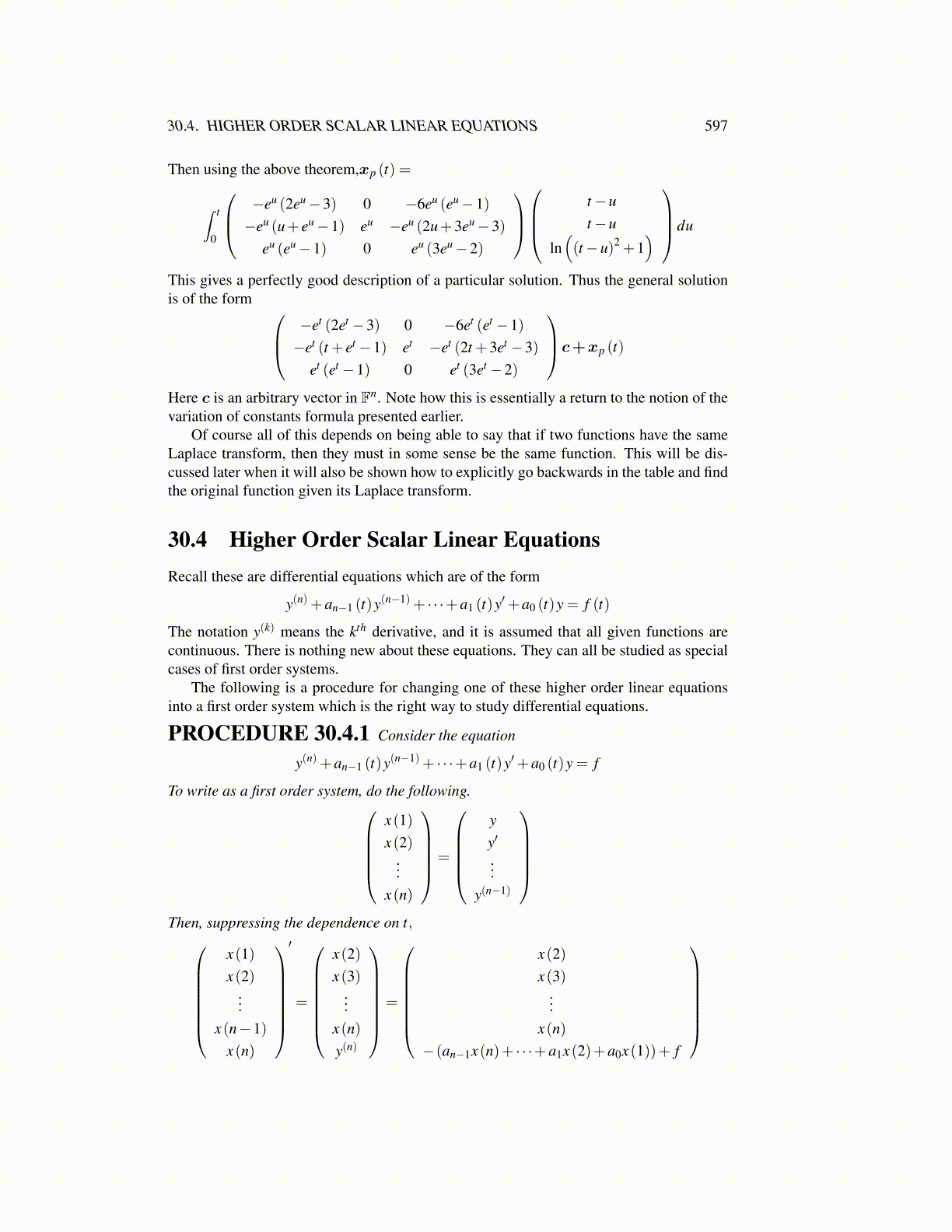 30.4 Higher Order Scalar Linear EquationsRecall these are differential equations which are of the form