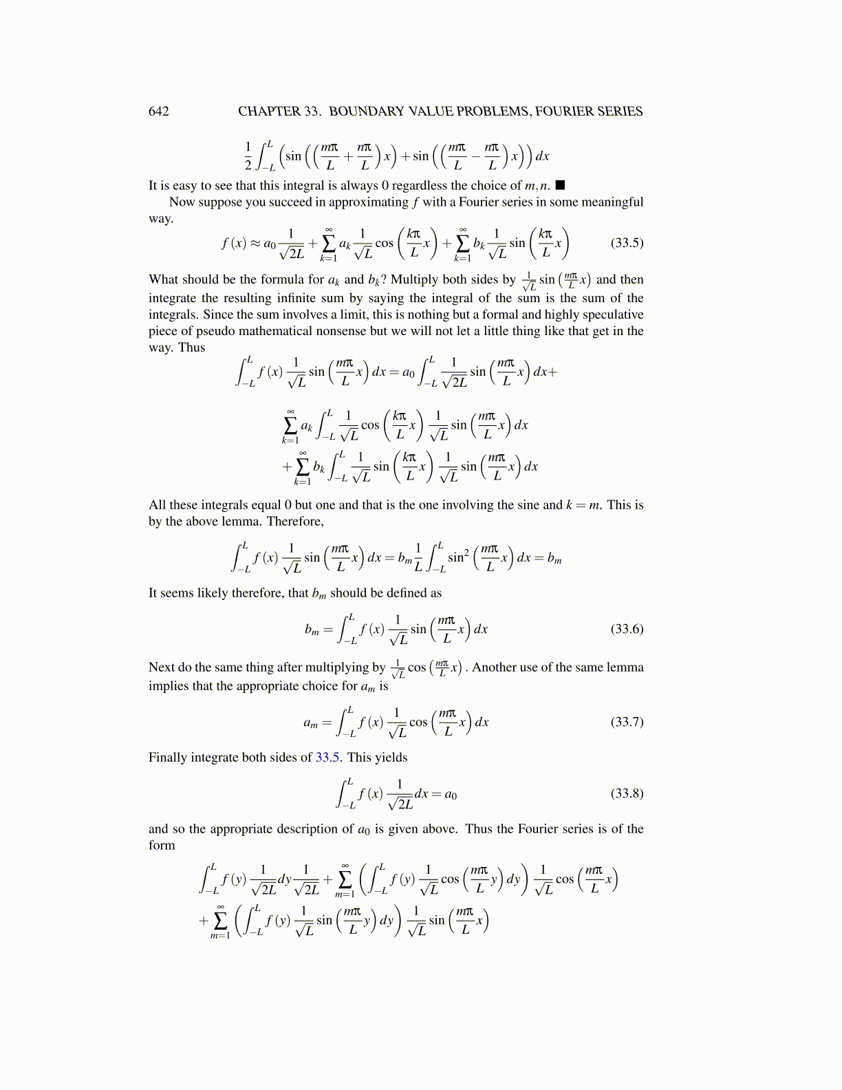 All these integrals equal 0 but one and that is the one involving the sine and k = m. This isby the above lemma. Therefore,∫ L