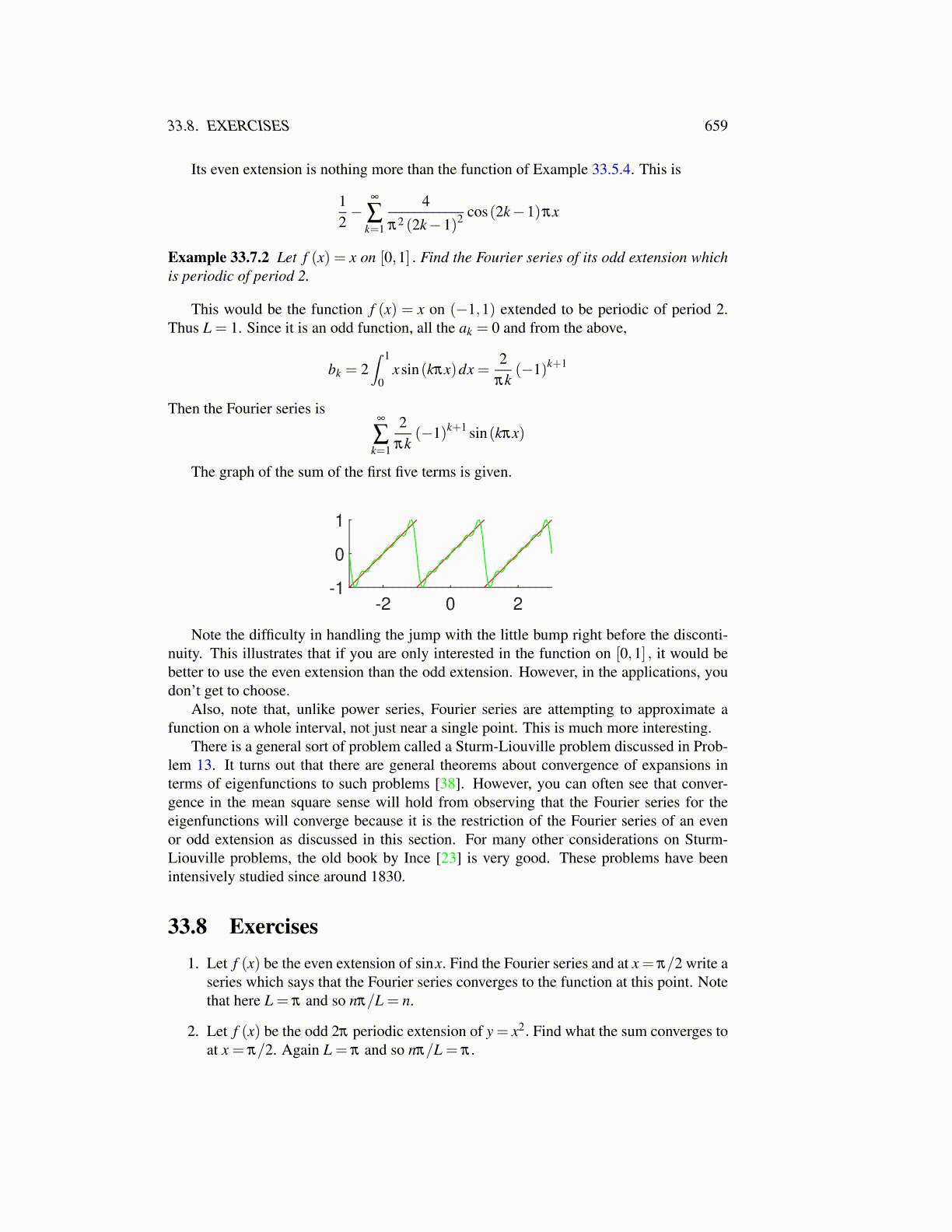 33.8 Exercises1. Let f (x) be the even extension of sinx. Find the Fourier series and at x = π/2 write a