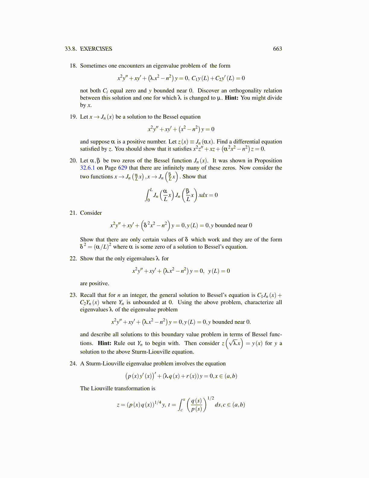 20. Let α,β be two zeros of the Bessel function Jn (x). It was shown in Proposition32.6.1 on Page 629 that there are infinitely many of these zeros. Now consider thetwo functions x→ Jn