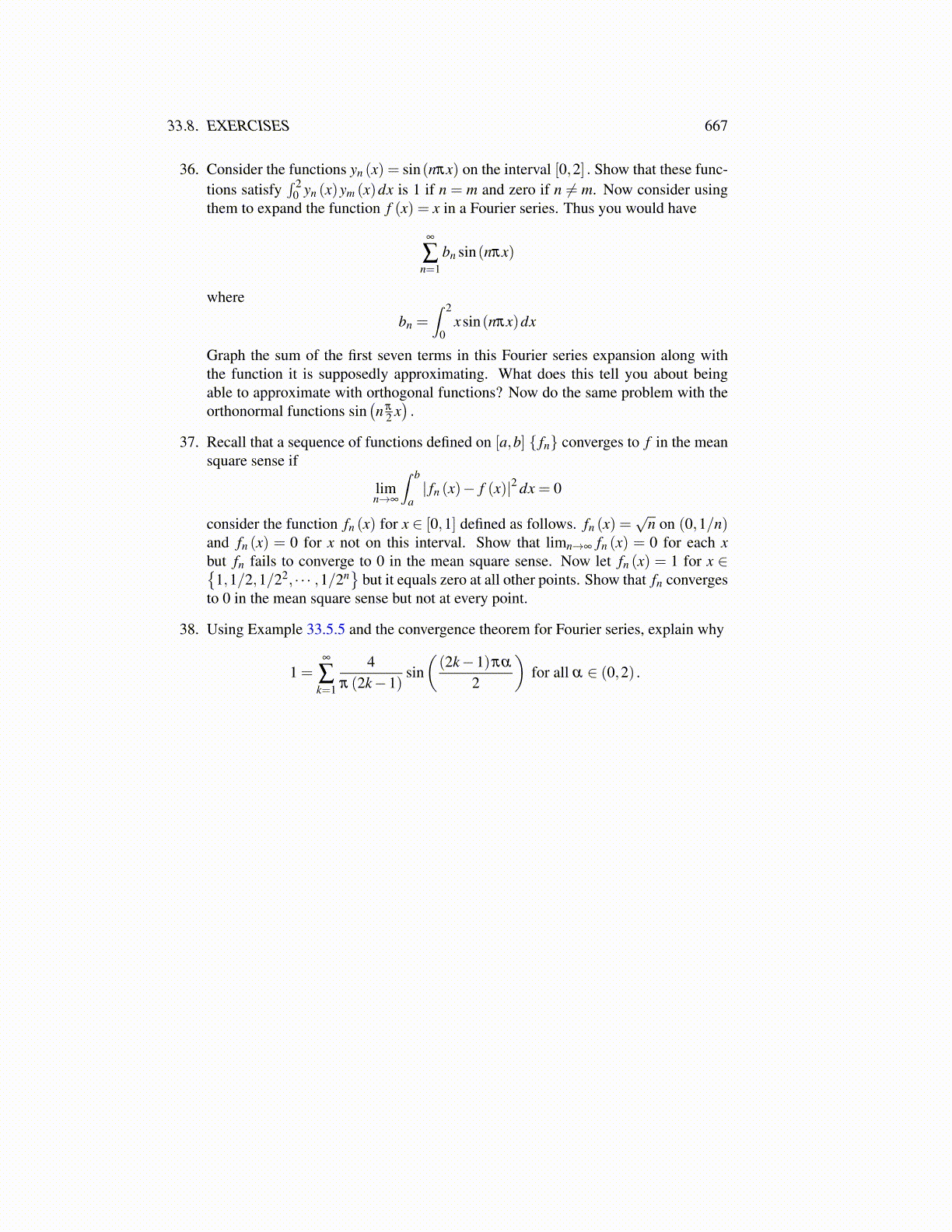 38. Using Example 33.5.5 and the convergence theorem for Fourier series, explain why