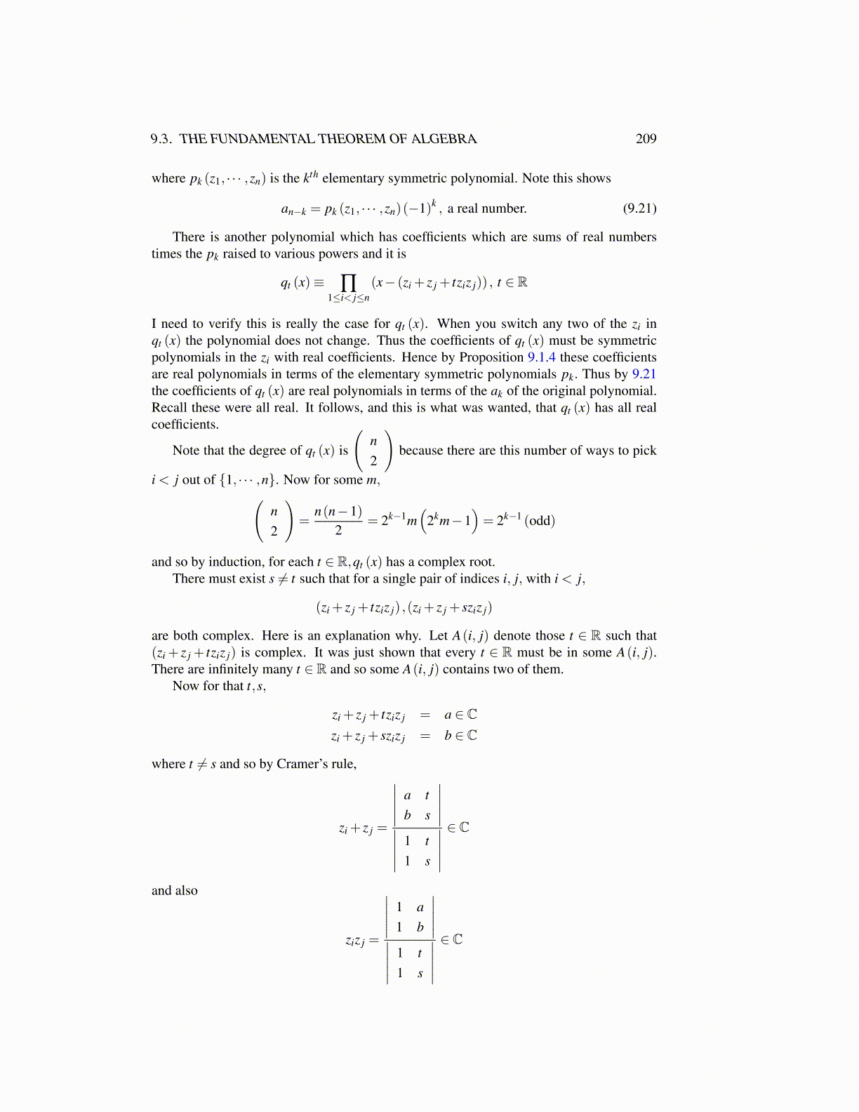 9.3. THE FUNDAMENTAL THEOREM OF ALGEBRA 209