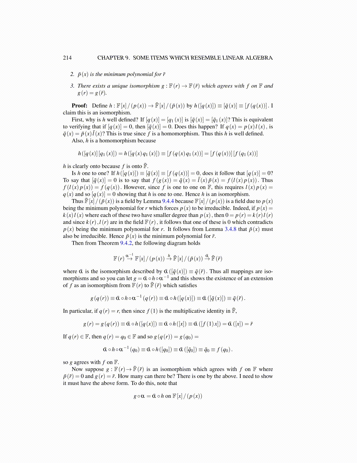 where ᾱ is the isomorphism described by ᾱ ([q̄(x)]) ≡ q̄(r̄) . Thus all mappings are iso-morphisms and so you can let g = ᾱ ◦h◦α−1 and this shows the existence of an extensionof f as an isomorphism from F(r) to F̄(r̄) which satisfies