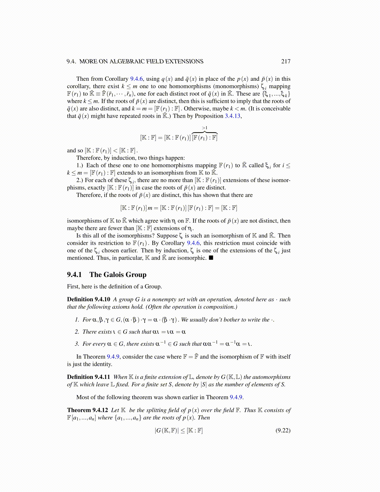 Definition 9.4.11 WhenK is a finite extension of L, denote by G(K,L) the automorphismsof K which leave L fixed. For a finite set S, denote by |S| as the number of elements of S.