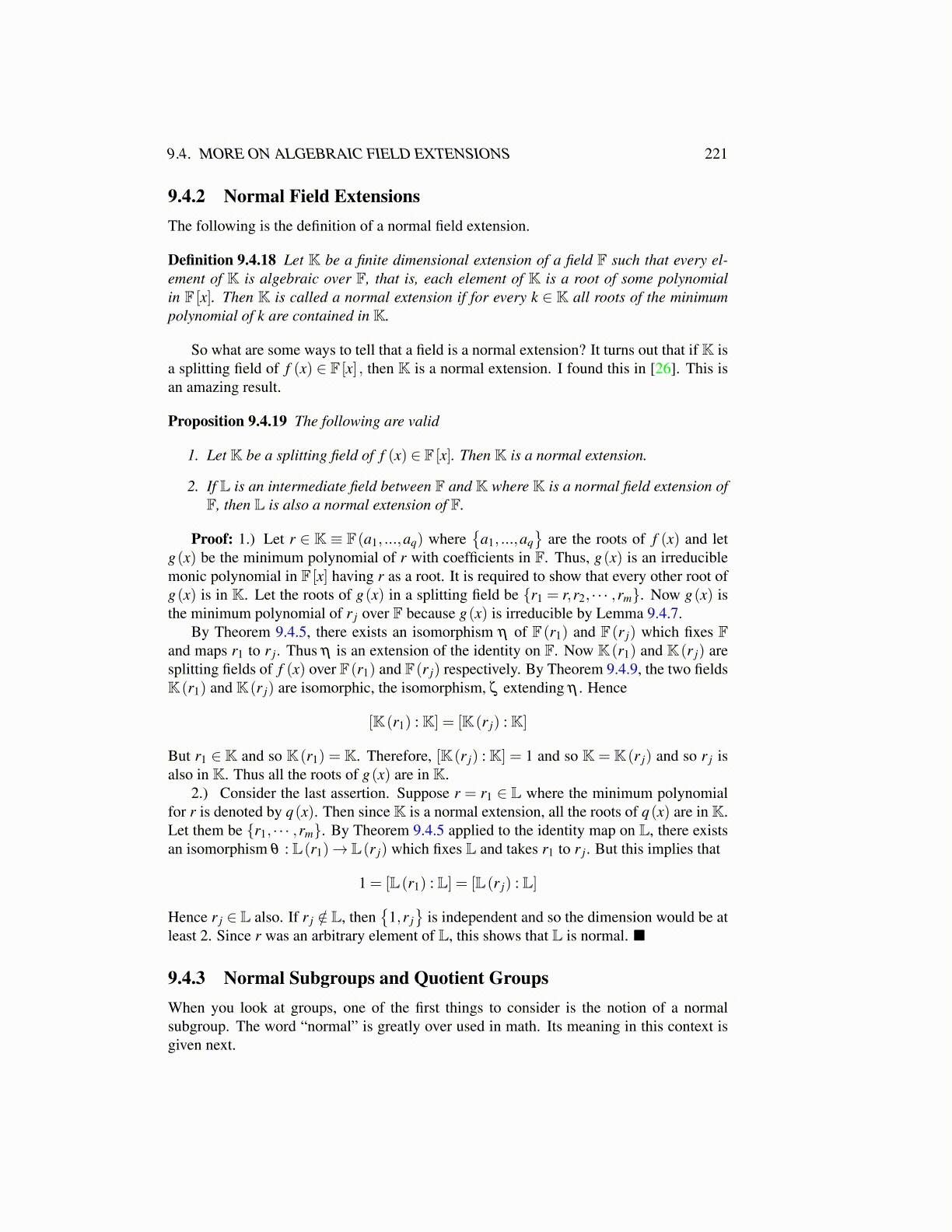9.4.2 Normal Field ExtensionsThe following is the definition of a normal field extension.
