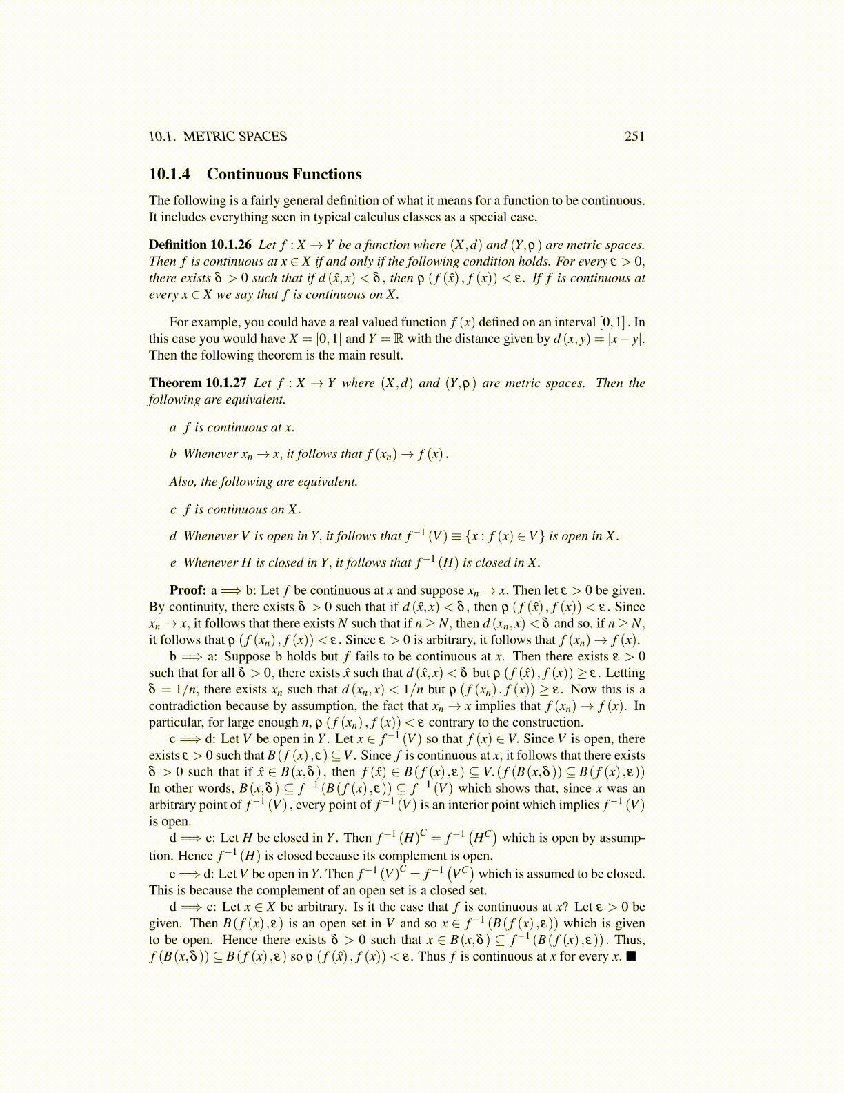 Theorem 10.1.27 Let f : X → Y where (X ,d) and (Y,ρ) are metric spaces. Then thefollowing are equivalent.