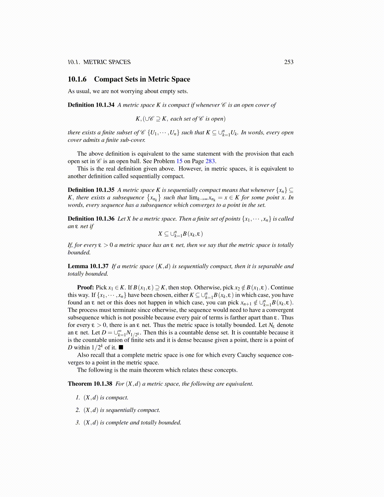 Theorem 10.1.38 For (X ,d) a metric space, the following are equivalent.