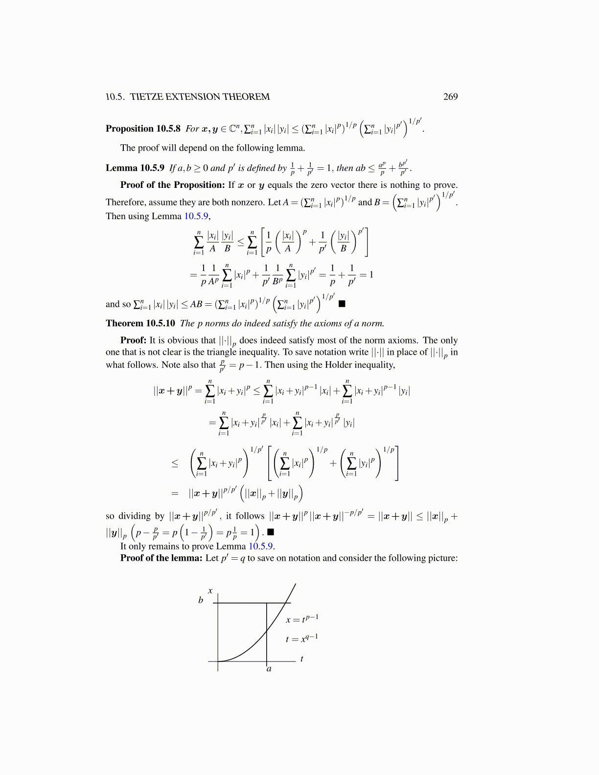 Lemma 10.5.9 If a,b≥ 0 and p′ is defined by 1p +