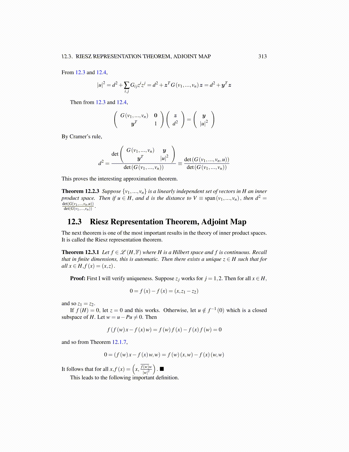 12.3 Riesz Representation Theorem, Adjoint MapThe next theorem is one of the most important results in the theory of inner product spaces.It is called the Riesz representation theorem.