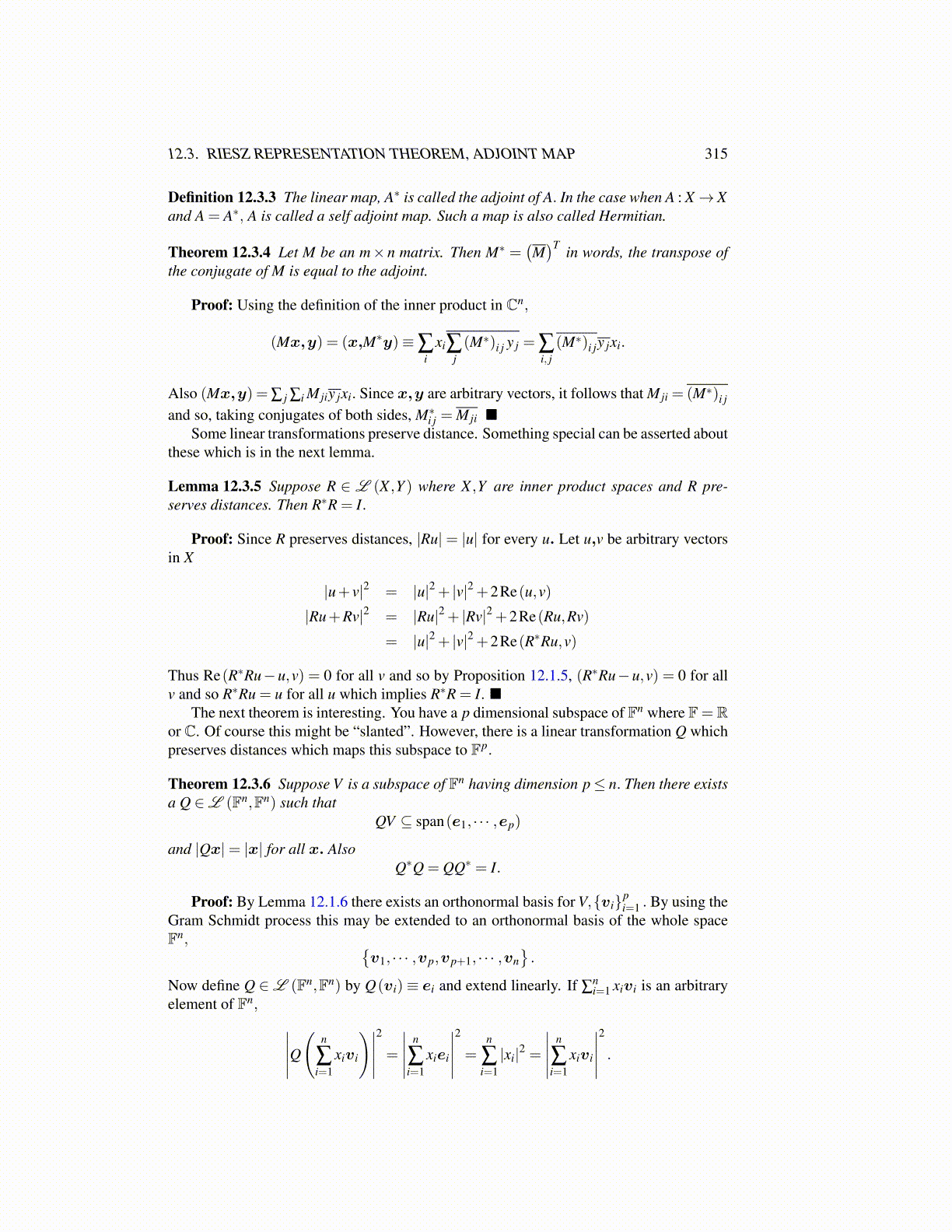 Theorem 12.3.6 Suppose V is a subspace of Fn having dimension p≤ n. Then there existsa Q ∈L (Fn,Fn) such that