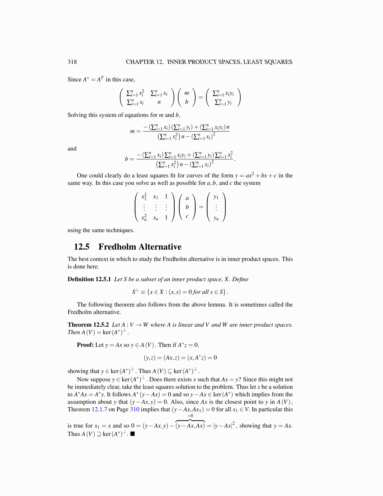 12.5 Fredholm AlternativeThe best context in which to study the Fredholm alternative is in inner product spaces. Thisis done here.