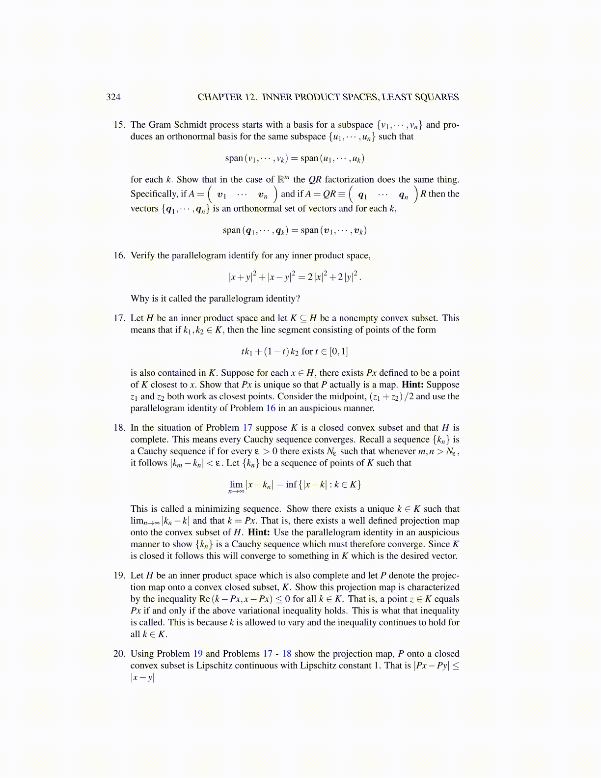 17. Let H be an inner product space and let K ⊆ H be a nonempty convex subset. Thismeans that if k1,k2 ∈ K, then the line segment consisting of points of the form