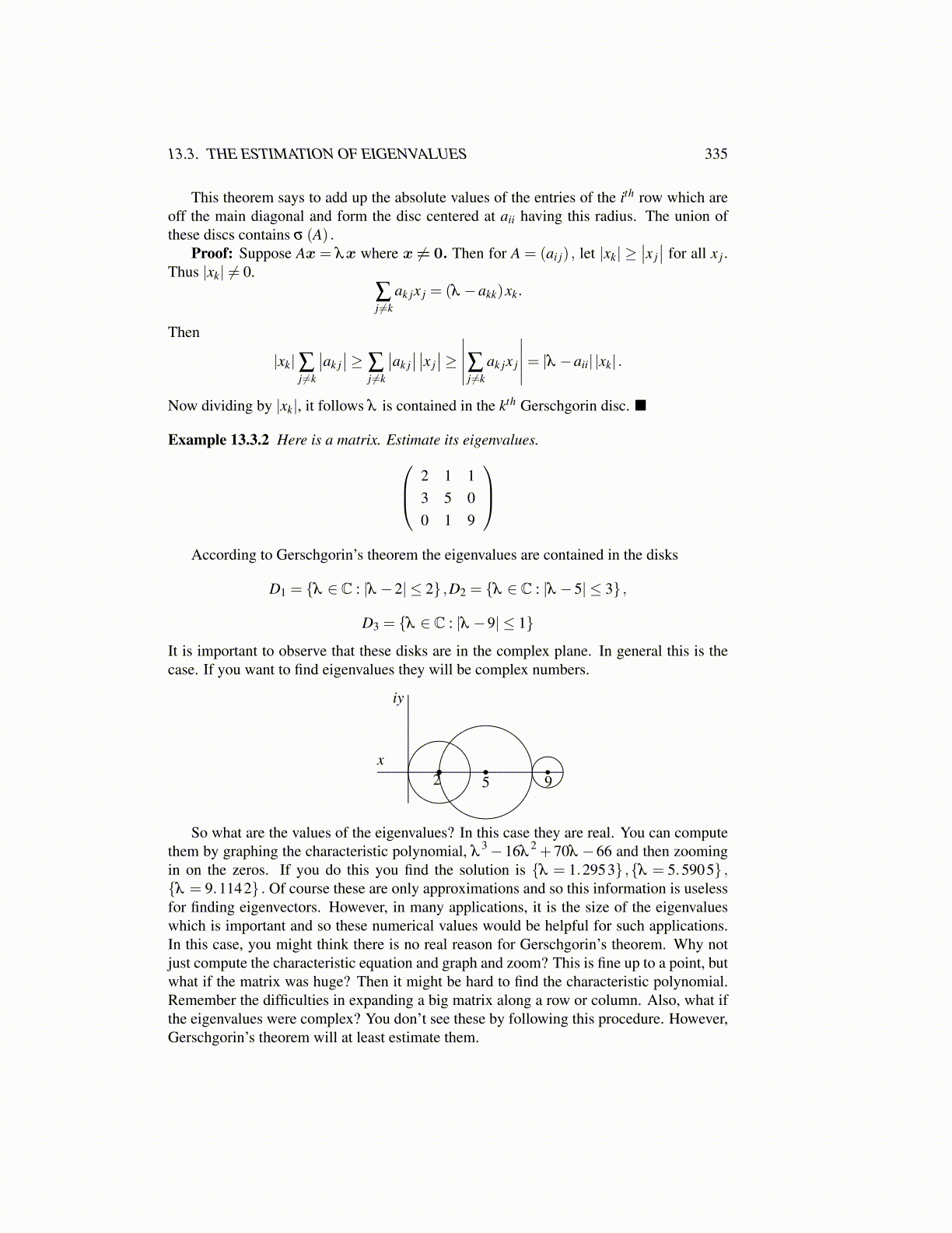 Now dividing by |xk|, it follows λ is contained in the kth Gerschgorin disc. ■